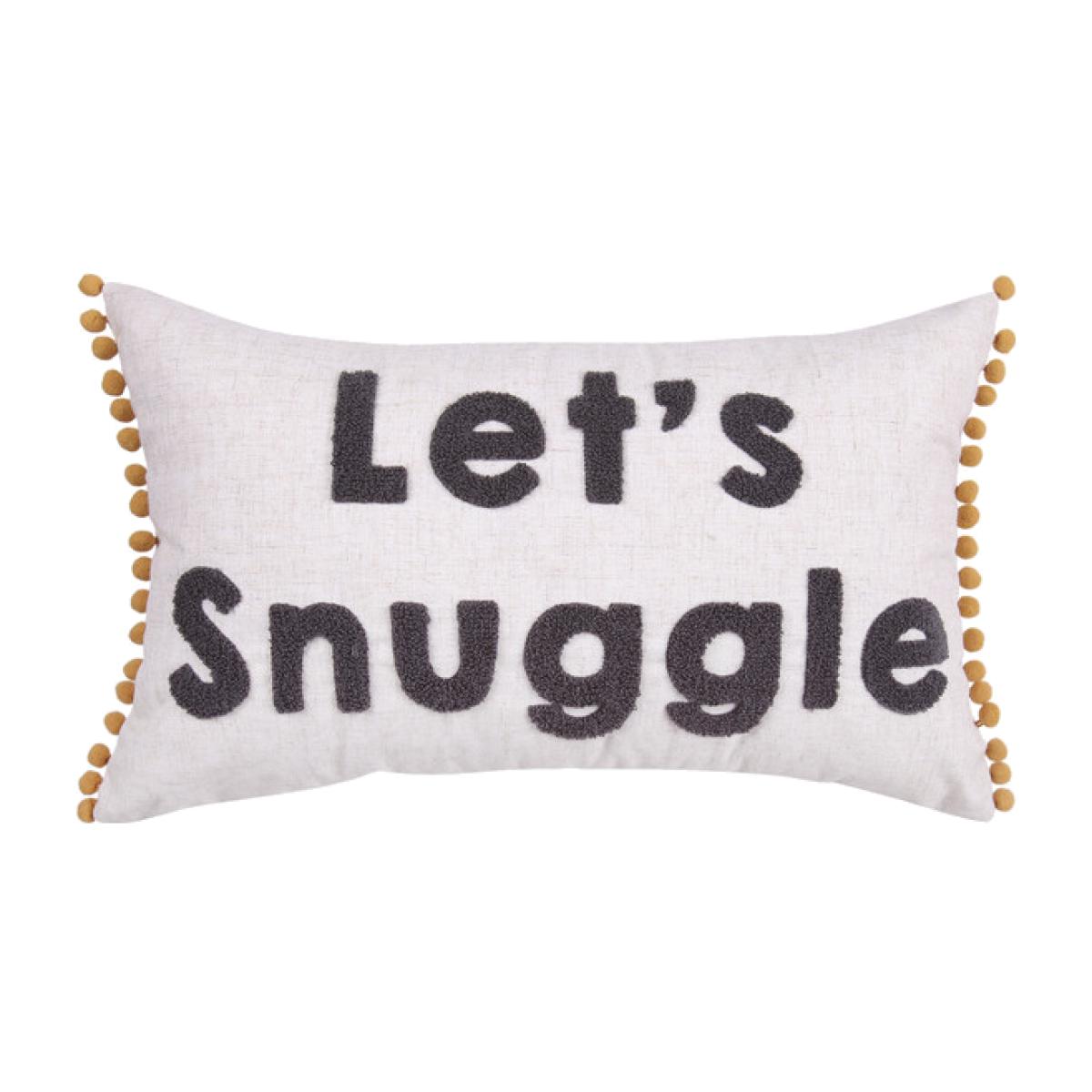 A cute and quirky addition to your scatter cushion collection, the Lets Snuggle Pom Pom Cushion features a cute sentiment printed about textured linen mix fabric. Yellow pom poms dotted along the trim add a colourful and funky touch to the design, making this fun accessory perfect for your favourite cuddle spot on the sofa or bed.