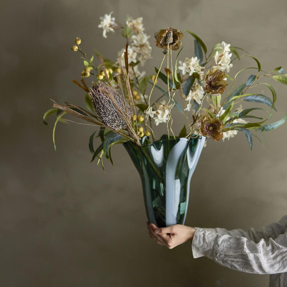 The Lettice Vase is a striking piece that works beautifully in both modern and eclectic interiors, thanks to its bold green hue and sculptural form. I love how it can serve as a standalone statement or be styled with a simple bouquet to add colour and personality to a space. Its size makes it versatile for placing on sideboards, dining tables, or even in the corner of a room for visual impact. For practical styling, consider pairing it with minimalist or monochrome interiors to highlight its distinctive shape, or combine with other glassware for an eclectic display. It’s perfect for bringing a pop of colour to neutral schemes or adding a contemporary touch to more vibrant spaces.