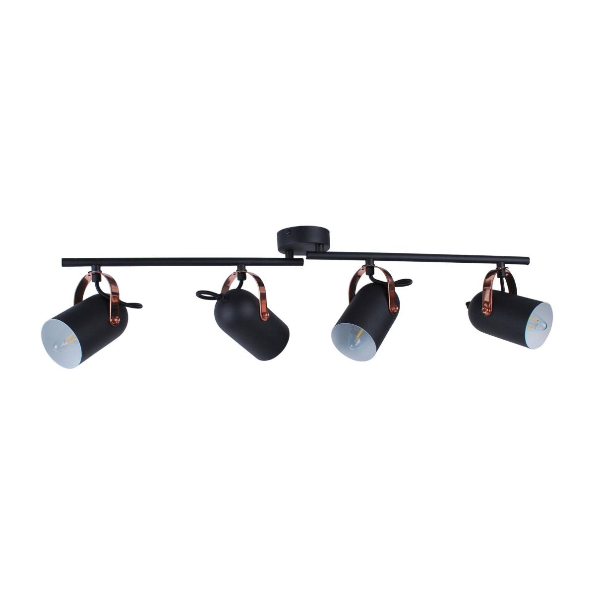 Modern 4 light ceiling spotlight bar boasting a matt black and polished copper finish. A modern twist on a classic spotlight light fitting, the Letto 4 light bar is a stylish piece, exclusive to Pagazzi. A minimal and versatile design with stylish fully adjustable, elongated lamp heads, this ceiling light is finished in matt black and is complete with polished copper detailing. A trendy design, perfect for creating a statement in any room. Pagazzi offers LED E14 Light bulbs in both warm white and cool white tones. Modern 4 light ceiling spotlight bar boasting a matt black and polished copper finish. A modern twist on a classic spotlight light fitting, the Letto 4 light bar is a stylish piece, exclusive to Pagazzi. A minimal and versatile design with stylish fully adjustable, elongated lamp heads, this ceiling light is finished in matt black and is complete with polished copper detailing. A trendy design, perfect for creating a statement in any room. Pagazzi offers LED E14 Light bulbs in both warm white and cool white tones.