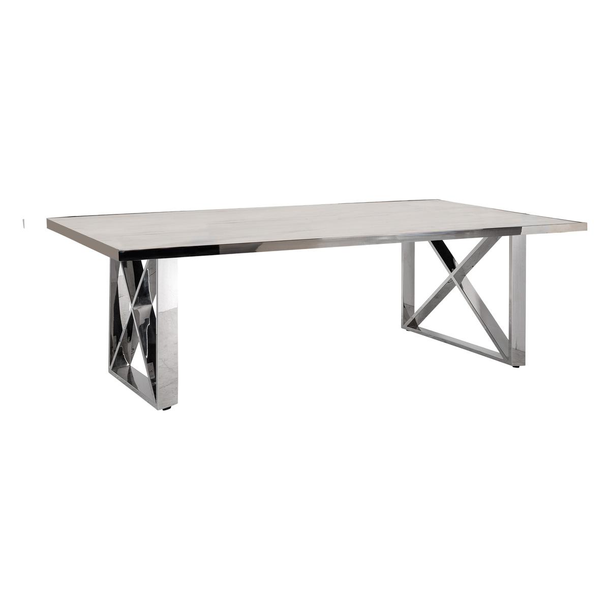 Beautifully minimal, the marble-topped Levanto cross-leg coffee table combines contemporary glamourous style with wonderful practicality. The perfect space to display coffee table books – or everyday items like magazines, coasters and TV remotes – this generously proportioned coffee table is very well crafted and will easily find a home in any stylish living space. The top is made of real marble, beautifully mottled and uniquely coloured, the cross-shaped legs are polished stainless steel, a design choice which emphasises this coffee table’s clean and simple look. The Levanto cross-leg coffee table is part of the Levanto collection of marble-topped dining and occasional tables. The range also includes a nest of two round tables and a striking console table. Marble has beautiful variations in finish and unique markings.