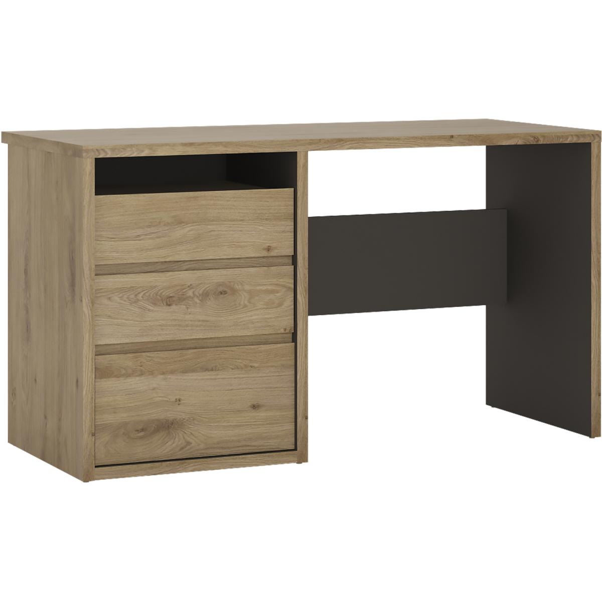 I’m a big fan of the Levenwick desk in Shetland Oak for its clean, unfussy lines and warm, natural finish - it slots right into modern Scandi, contemporary or even pared-back industrial schemes. The built-in drawers keep paperwork out of sight, while the generous tabletop means you’ve got room for a laptop, a statement lamp and that herb pot you’ve been meaning to repot. For styling, keep the surface clutter-free by using a slim desktop organiser in muted metal or rattan. Lean a slim-framed print against the wall rather than hanging it, then add a small succulent or trailing plant to soften the look. Finish with a simple brass or matte-black task lamp and a woollen desk pad in a neutral tone to tie everything together.