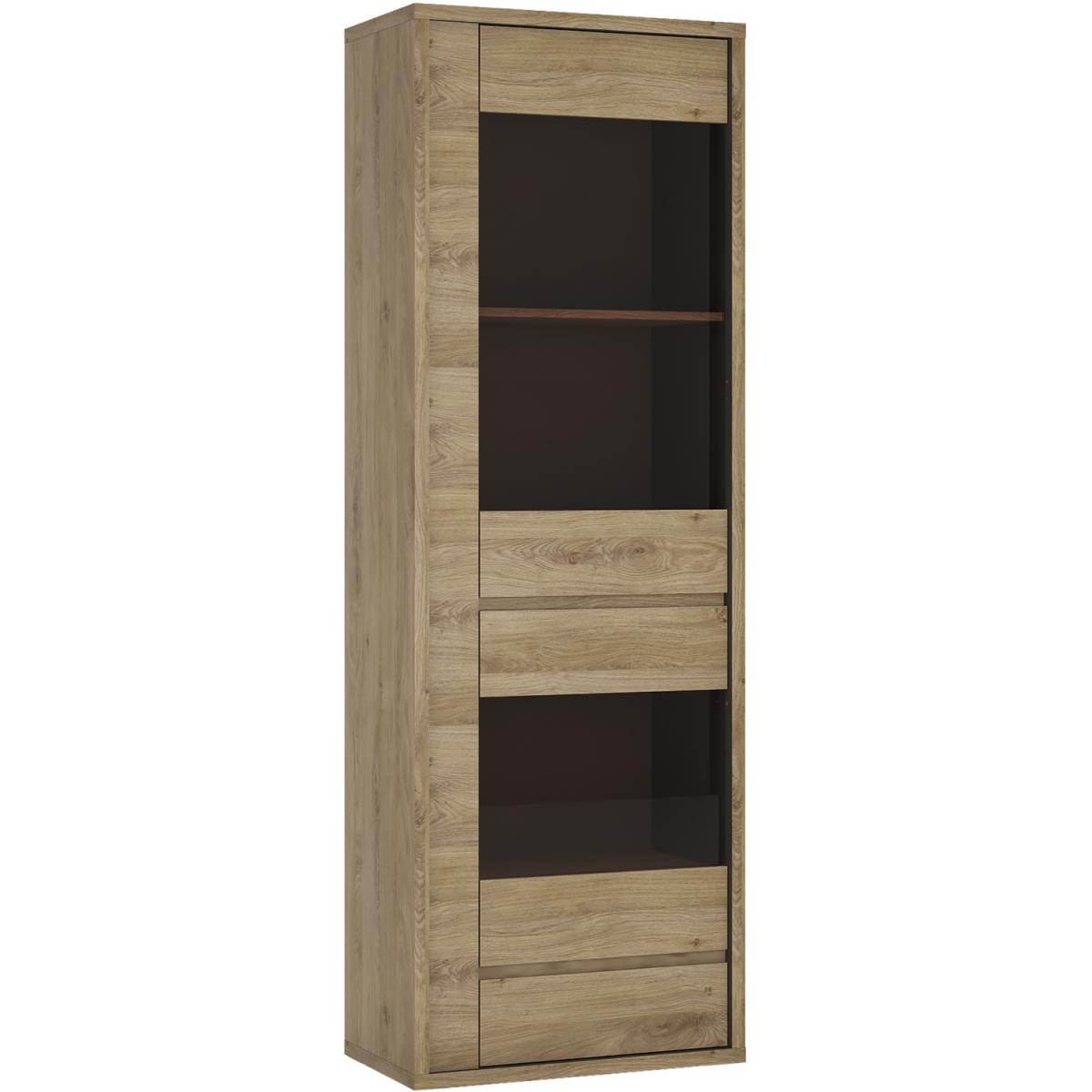 Levenwick One Door One Drawer Narrow Glazed Display Cabinet - Shetland Oak