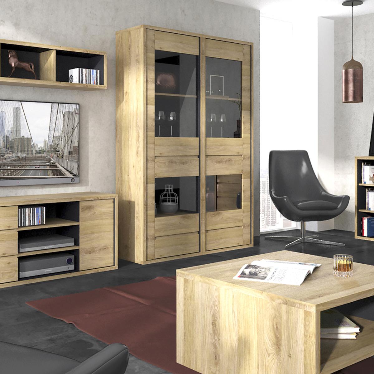 Tyler Kitchen Cabinet with Shelves - Light Walnut & Anthracite