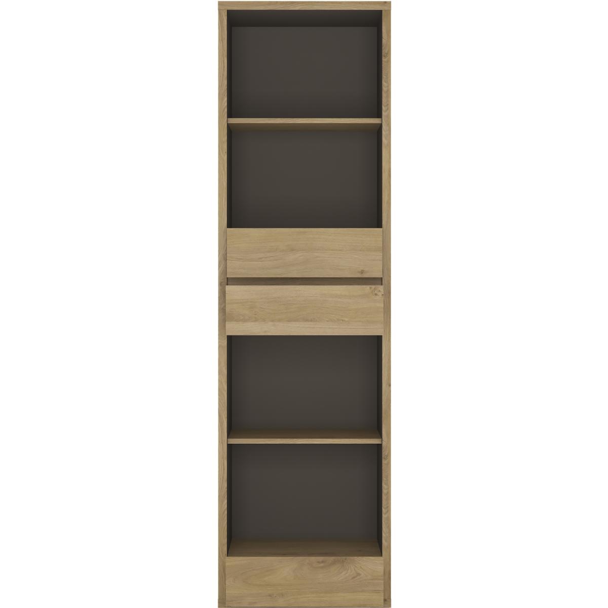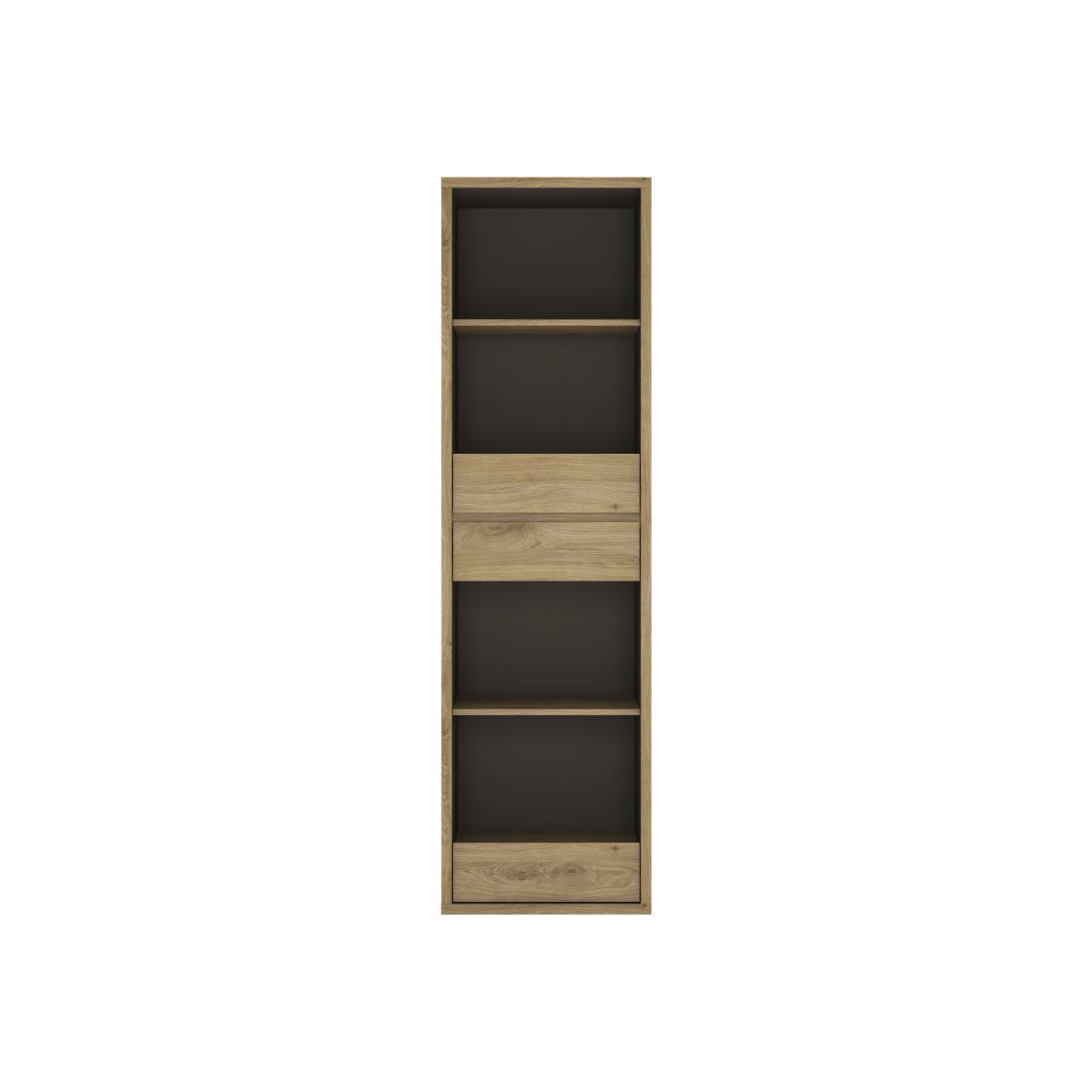 I’d call this the Levenwick tall shelf - its slim frame and muted Shetland oak finish make it an instant fit in Scandi-inspired, contemporary or even industrial schemes. The narrow depth means it works brilliantly in a hallway or snug study, while the two concealed drawers are ideal for stashing cables, notepads or small accessories out of sight. For styling, balance books with a few low-profile objects and a trailing plant on the middle shelf to break up the vertical lines. Use the drawers to hide everyday clutter and keep the visible shelves to a curated edit of 8-10 items, mixing textures (ceramics, metal, wood) and odd-numbered groupings to maintain visual interest.
