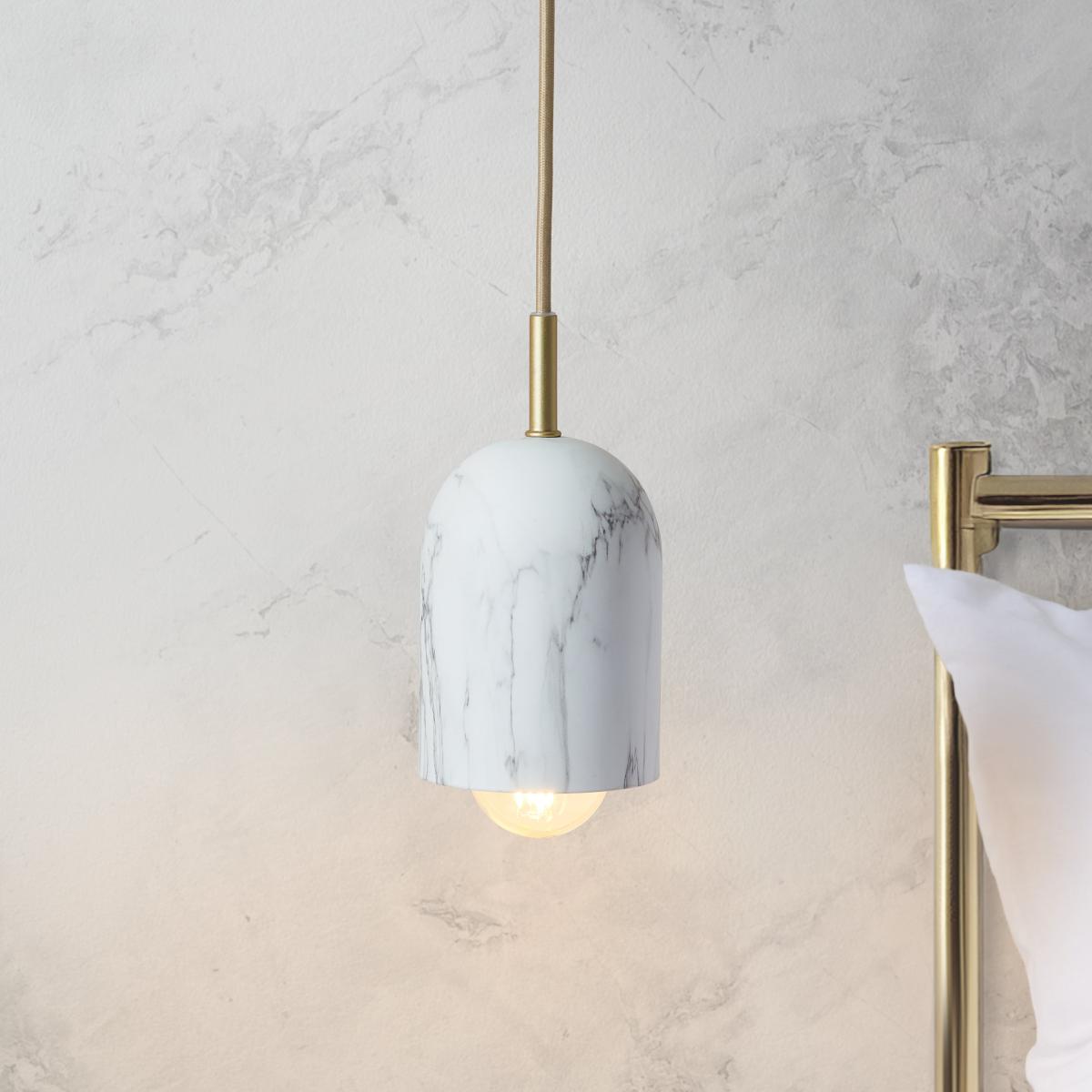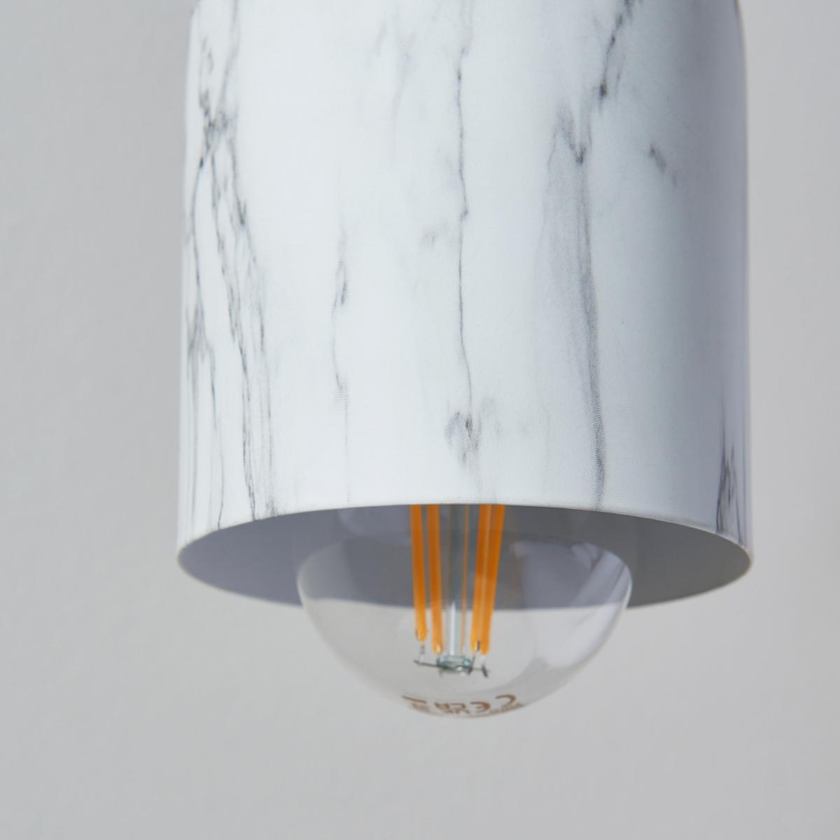 * Gorgeous, Marble Design* Modern-Contemporary Look* Made from Sturdy Metal* Dimmable Compatible - Needs Dimmable Bulb & Switch* Adjustable Height - Tailored Ambience* Requires: E27 Cap Type & Standard (GLS) Bulb Finished in a luxurious marble effect, this beautiful pendant light is comprised from sturdy metal and offers adjustable height capabilities, perfect for tailored ambience.