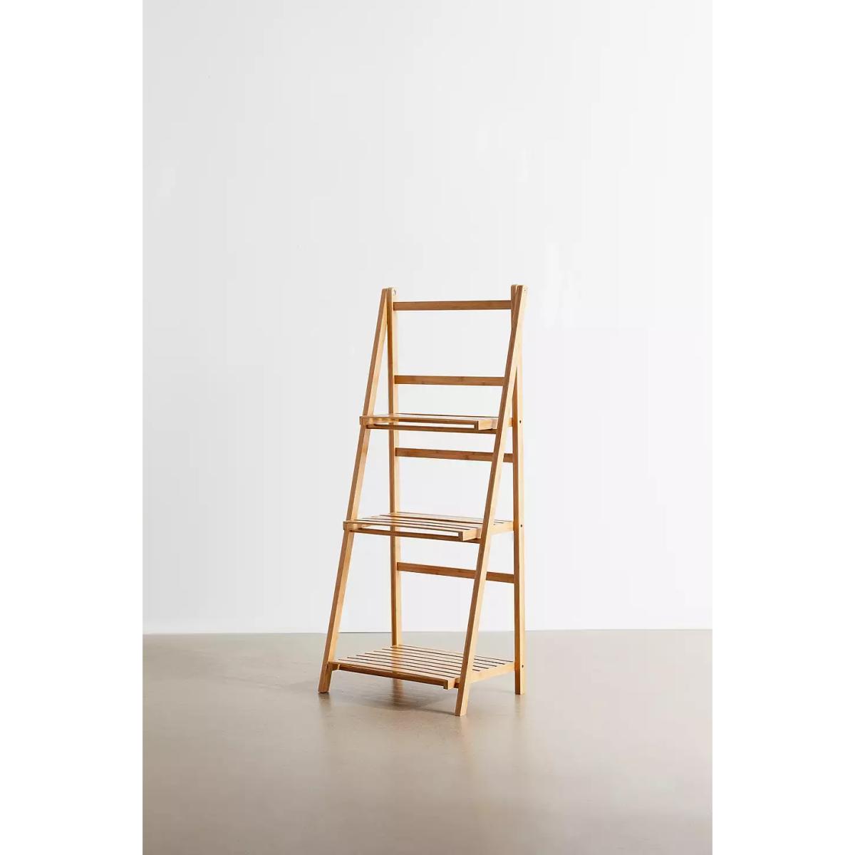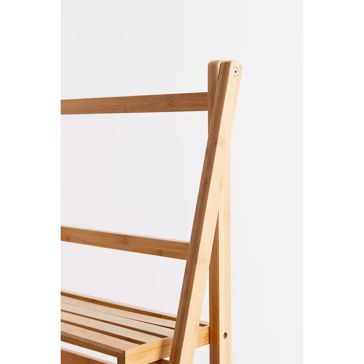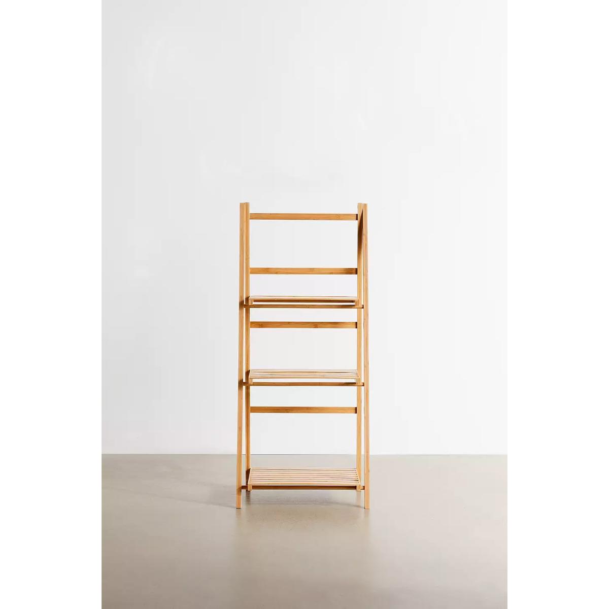 3-tiered standing bamboo storage shelf, perfect for curating a display of your favourites. Easel frame features a trio of slatted shelves that we love using for ceramics, flowers, books and so much more. *Online return only. This item cannot be returned in-store. * *Please note furniture items currently cannot be shipped to Northern Ireland or The Republic of Ireland. Delivery of large furniture items may take 2-3 weeks and are therefore not eligible for Next Day Delivery.* **Content + Care** \- 100% Bamboo \- Wipe clean **Size** \- Dimensions: L: 48cm x W: 32cm x H: 110cm \- Top shelf dimensions: L: 40.5cm x W: 17.3cm \- Middle shelf dimensions: L: 40.5cm x W: 24.5cm \- Bottom shelf dimensions: L: 40.5cm x W: 31.7cm \- Leg height: 110cm \- Shelving weight limit: 2kg \- Weight: 2.9kg