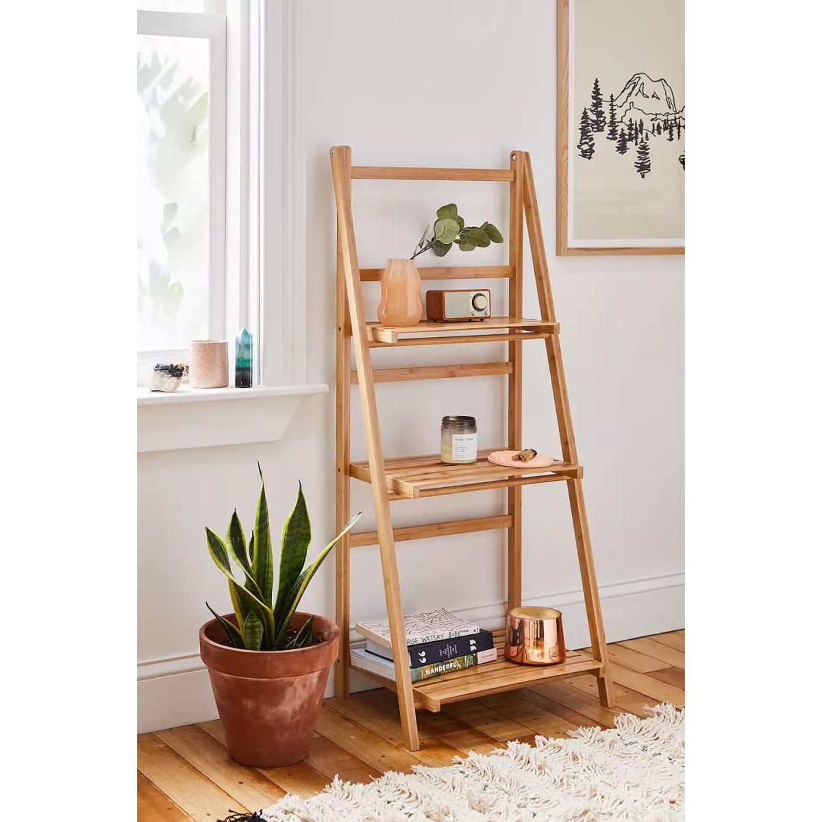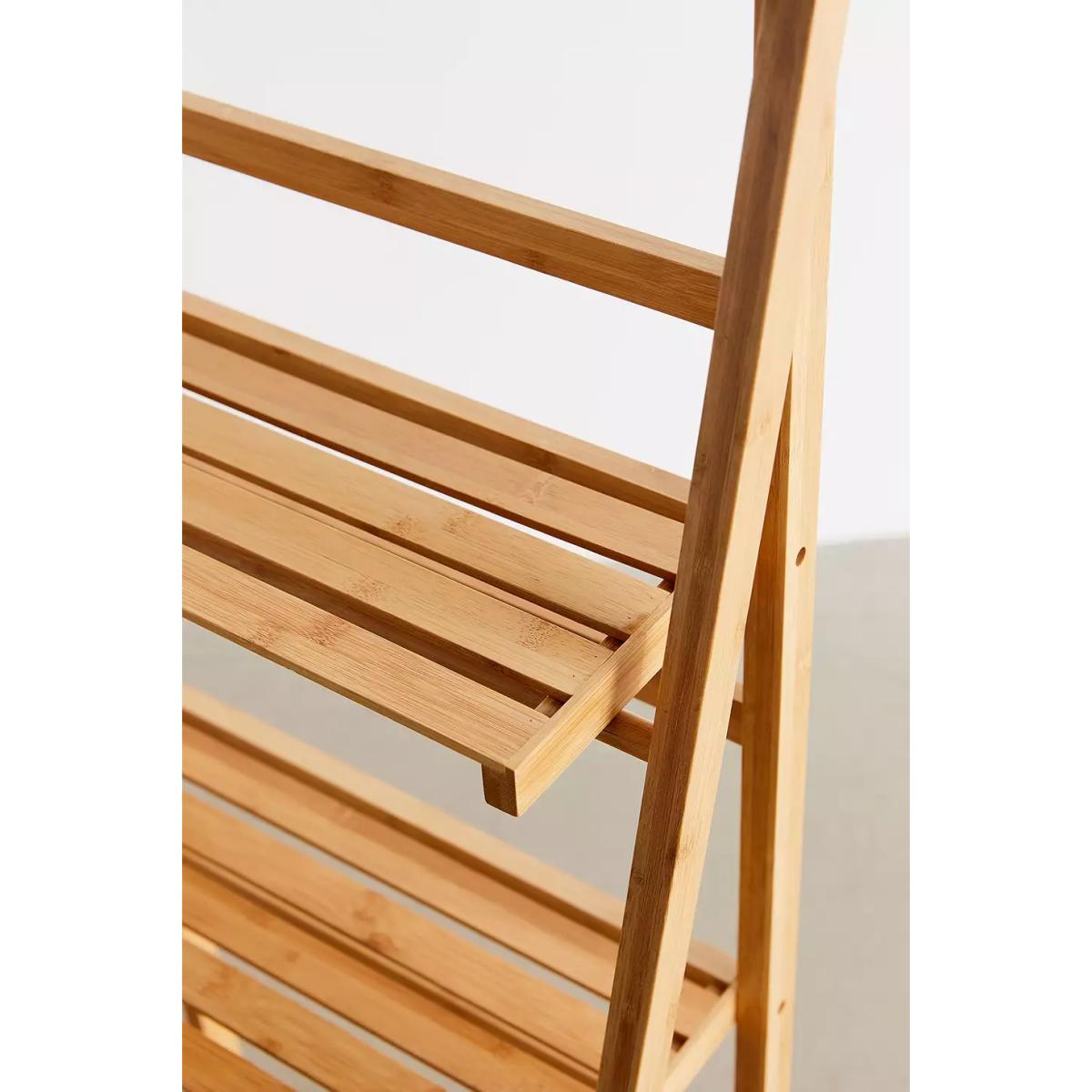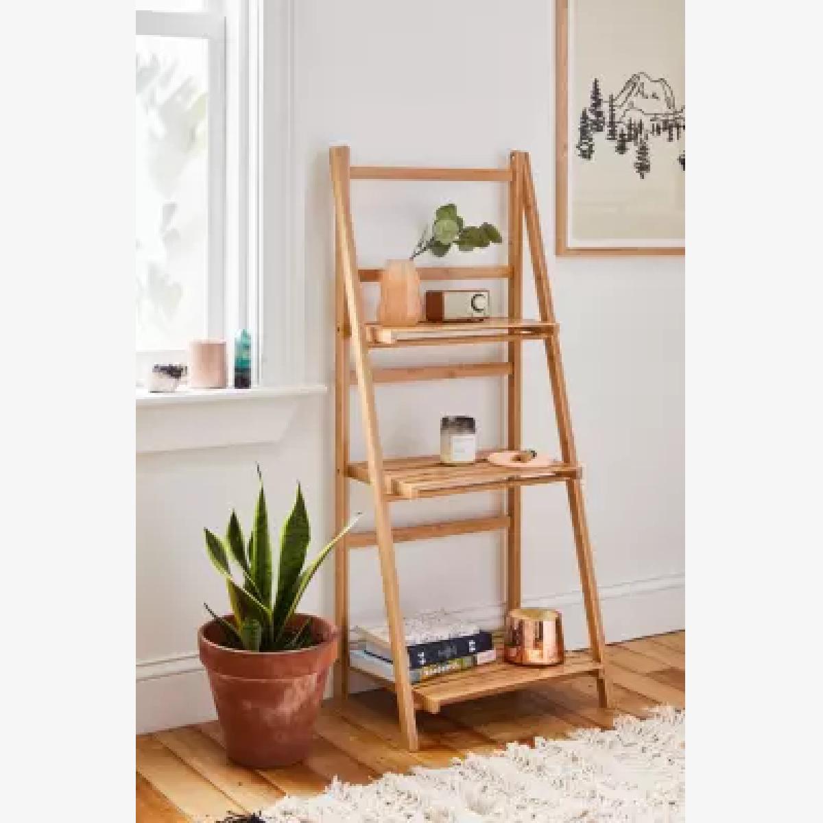 3-tiered standing bamboo storage shelf, perfect for curating a display of your favourites. Easel frame features a trio of slatted shelves that we love using for ceramics, flowers, books and so much more. *Online return only. This item cannot be returned in-store. * *Please note furniture items currently cannot be shipped to Northern Ireland or The Republic of Ireland. Delivery of large furniture items may take 2-3 weeks and are therefore not eligible for Next Day Delivery.* **Content + Care** \- 100% Bamboo \- Wipe clean **Size** \- Dimensions: L: 48cm x W: 32cm x H: 110cm \- Top shelf dimensions: L: 40.5cm x W: 17.3cm \- Middle shelf dimensions: L: 40.5cm x W: 24.5cm \- Bottom shelf dimensions: L: 40.5cm x W: 31.7cm \- Leg height: 110cm \- Shelving weight limit: 2kg \- Weight: 2.9kg