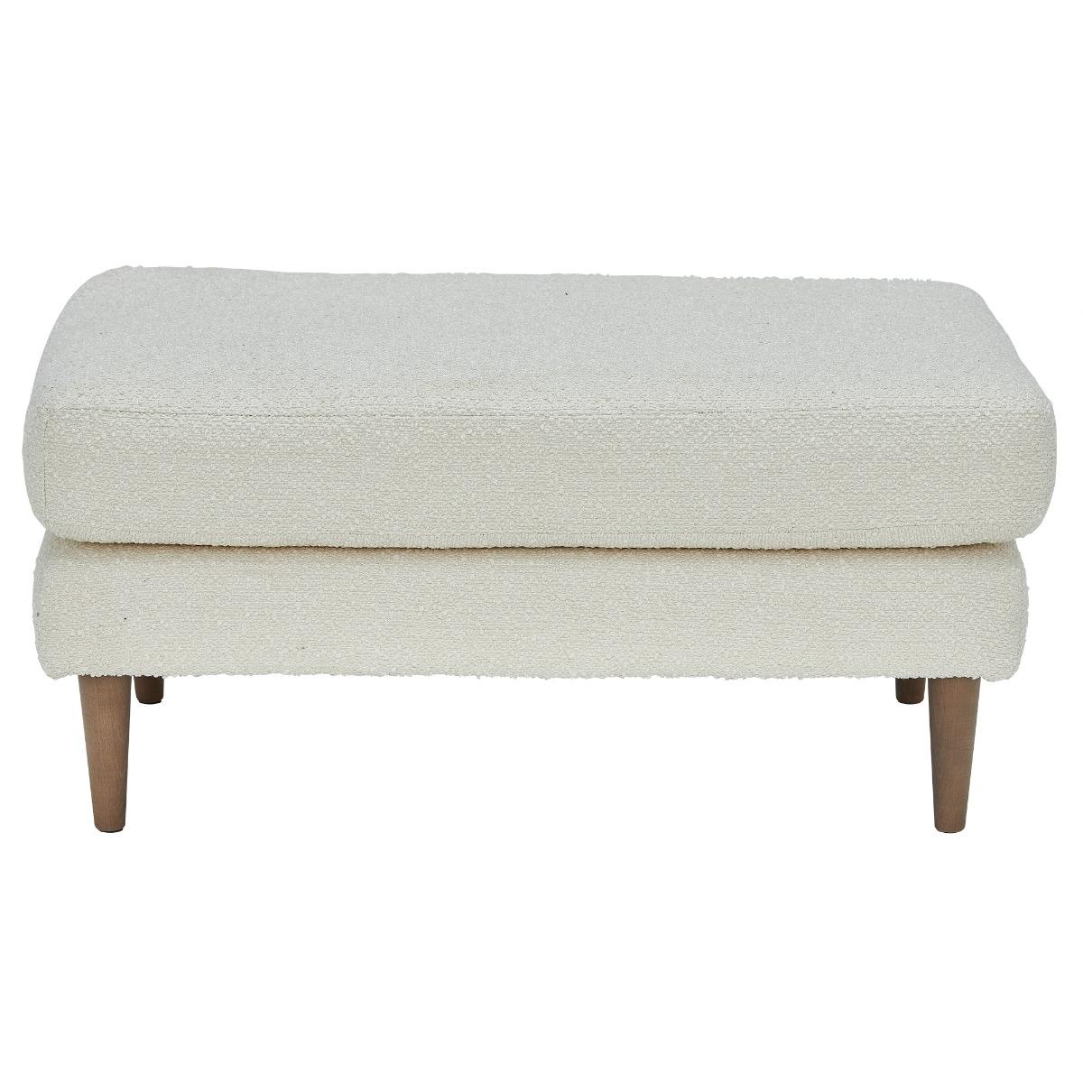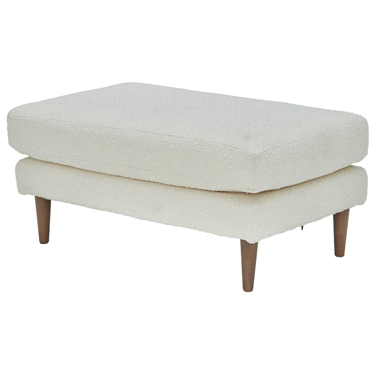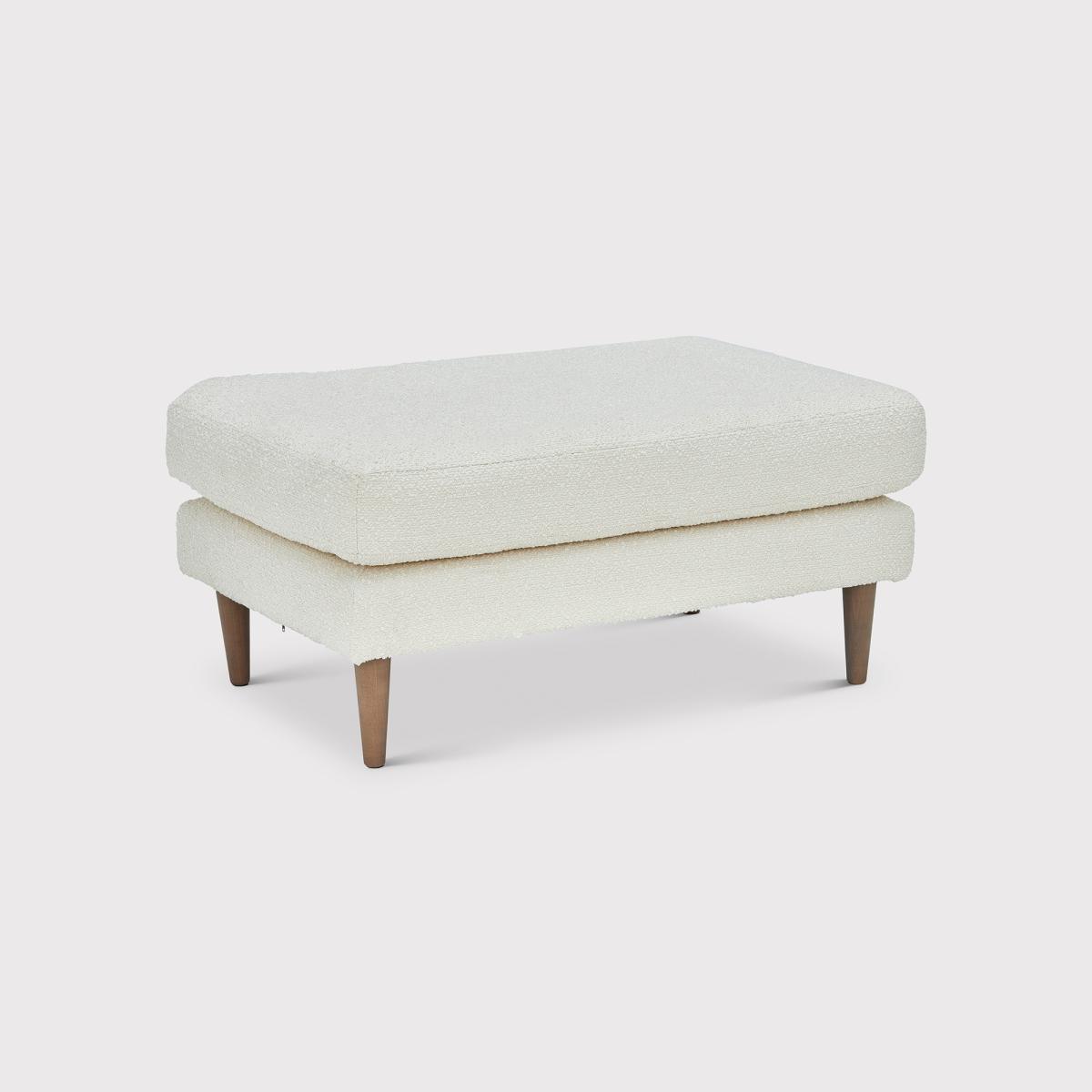 Super snug and bang on trend, the Levico Footstool, Boucle Ivory with Oak Feet allows you to kick up your feet after a long, stressful day and totally relax. Perfectly paired with the Levico Sofa and Snuggler for a cohesive look, this range is ultra-modern with an accommodating, cosy touch. The comfortable foam cushioning is wrapped in a beautifully soft boucle fabric in tones to suit a wide range of interiors. Complete with solid oak feet adding character and warmth, the Levico Footstool will leave you feeling content.