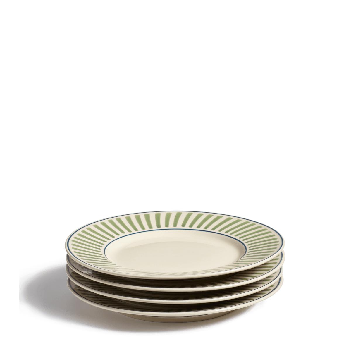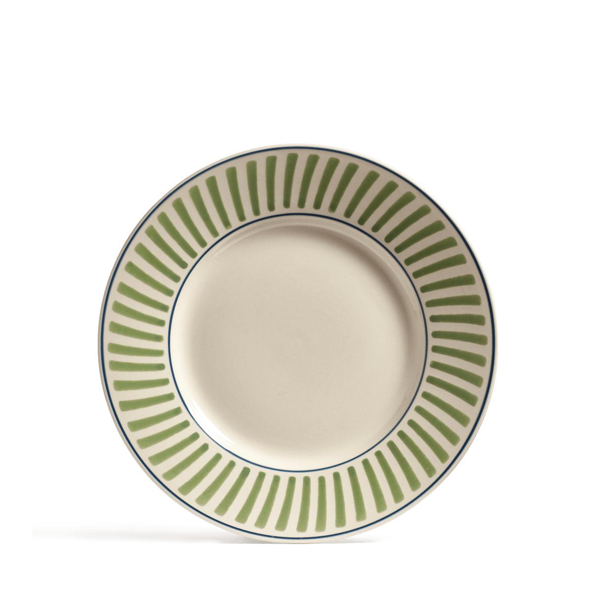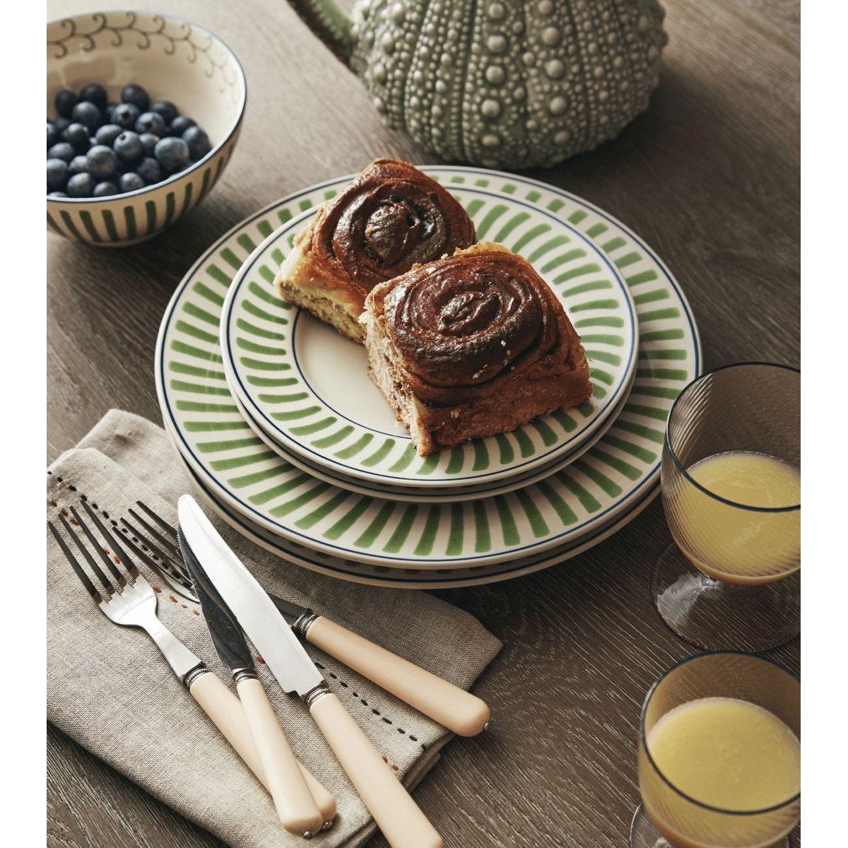 Bring some life to your table with this simple yet handsome crockery set, with elegantly hand-painted inidigo rims and irregular green stripes that are stamped and overlapped for the effect of hand painting, just with more precision. These dinner plates are hardwearing enough for everyday use, but would work beautifully as part of a more elaborate scheme.