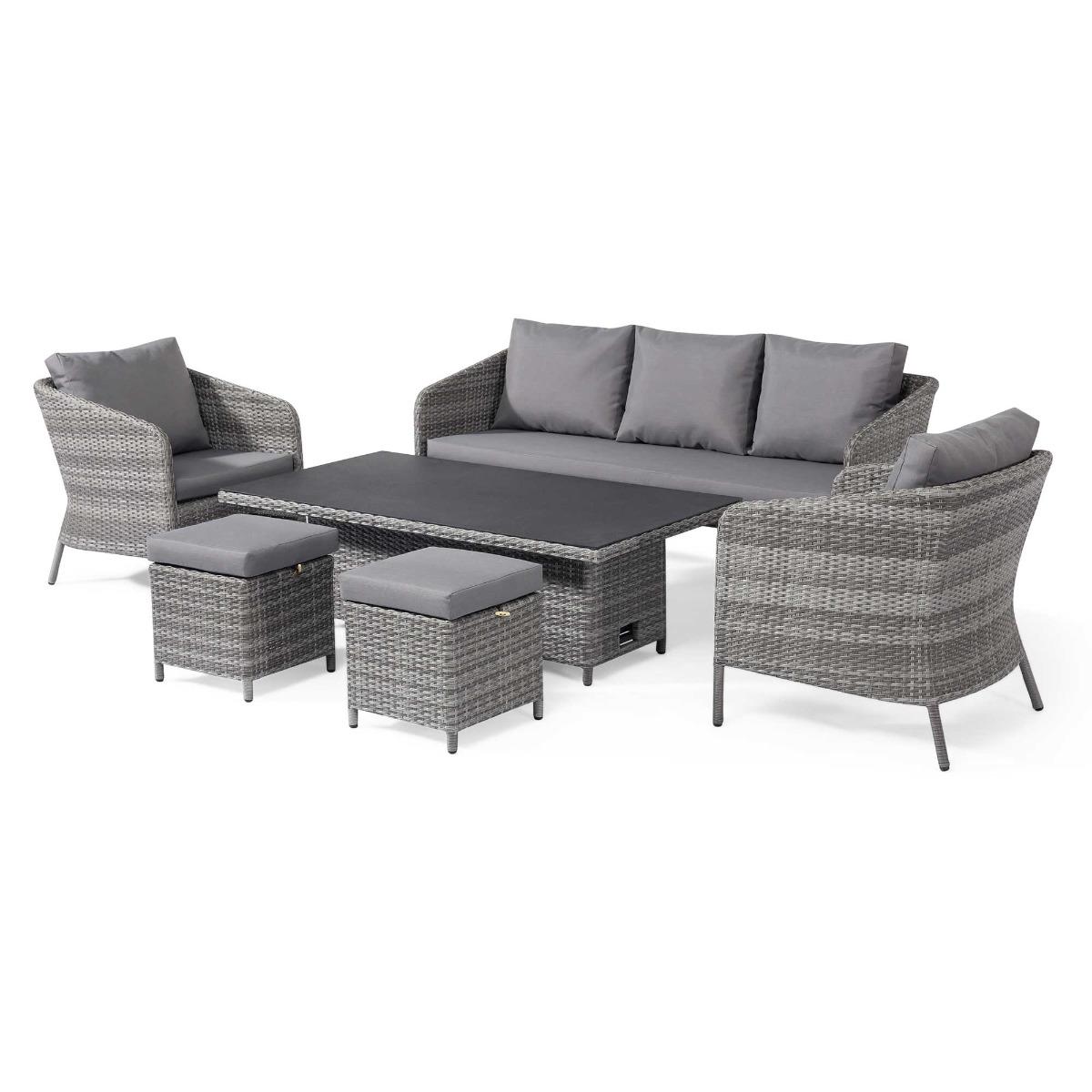 Levisham Garden 8 Seater Sofa Dining Set With Rising Table, Grey | Barker & Stonehouse