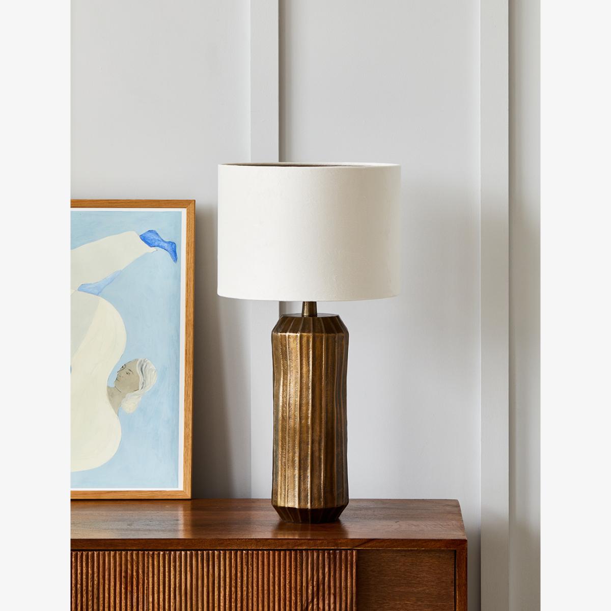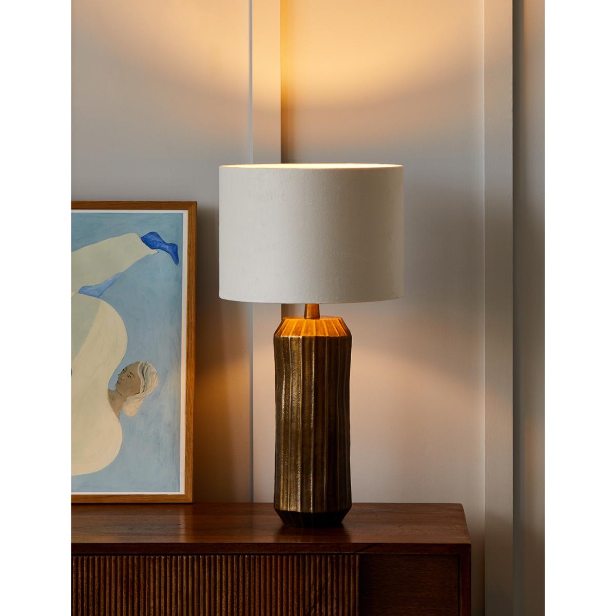 Pair this statement Bronze Aluminium Table Lamp Base with your favourite Rose & Grey lampshade and create a unique lamp that suits your interior style. Whether you prefer a classic nude or a bold retro lampshade, the antique bronze base will complement your choice perfectly. We just love the vintage vibes this lamp adds to the room. Perfect to be used as a desk lamp, bedside table lamp or for lighting up any corner of your home. Photographed with our Small White Velvet Shade or create your own look with our selection of lamp shades.
