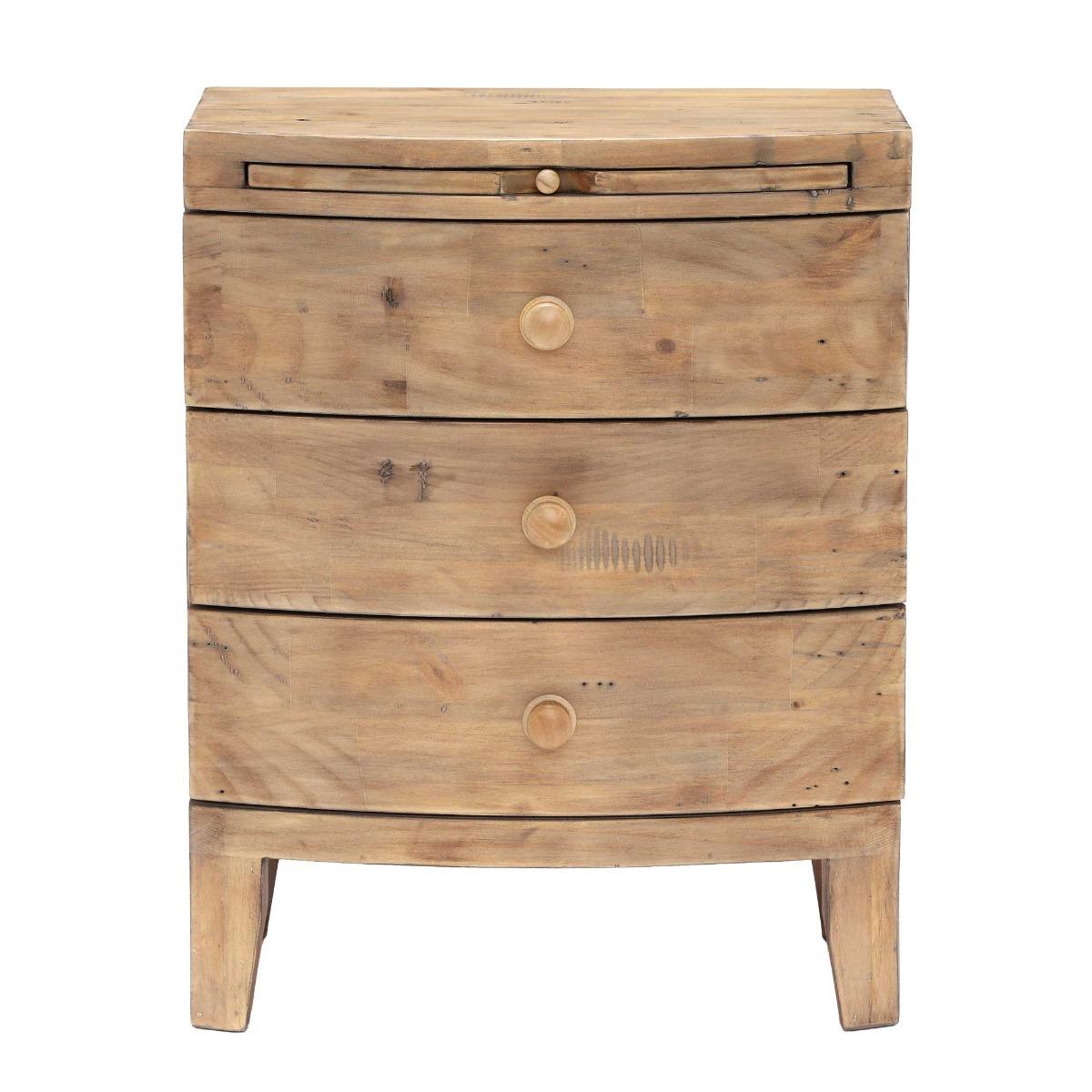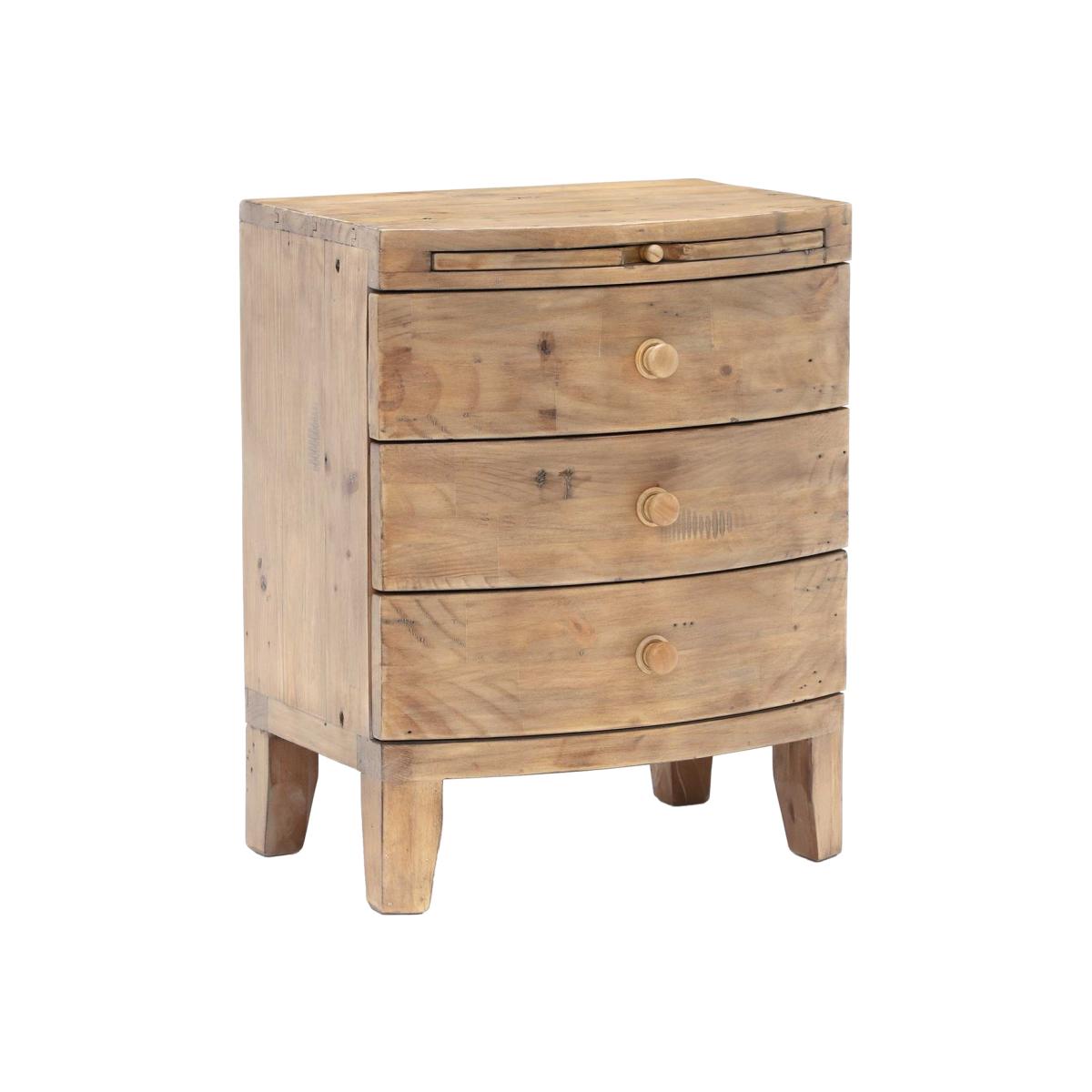 Create a beautifully relaxed bedroom scene with the Lewes furniture range. The Lewes 3 Drawer Wide Bedside Chest will add the perfect finishing touch. Made from reclaimed wood with a warm sundried wheat finish, it features a curved front, shaker style legs and wooden handles. A pull out coffee slider and three spacious drawers make this a practical addition to any bedside.
