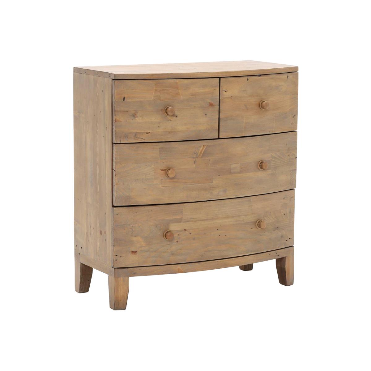 The Lewes 4 Drawer Chest boasts a timeless style that will add charm to any bedroom. Ethically made from reclaimed wood, its warm sundried wheat finish has been subtly distressed for a unique appeal. The 4 Drawer Chest features a curved front with shaker style legs and wooden handles, while four spacious drawers make it a practical storage choice.