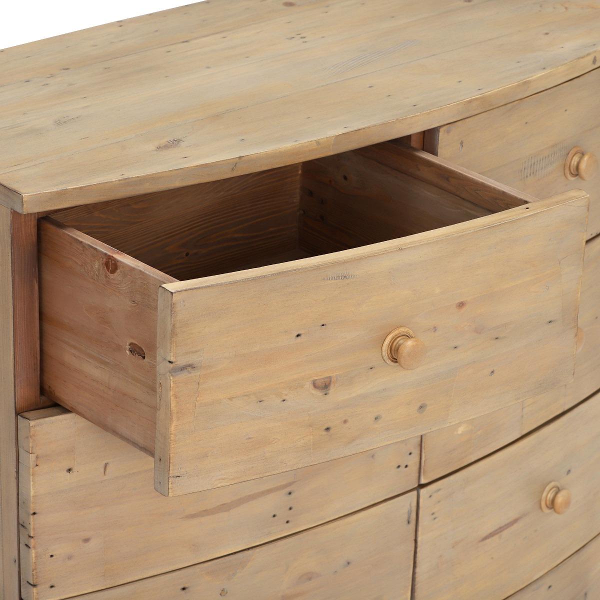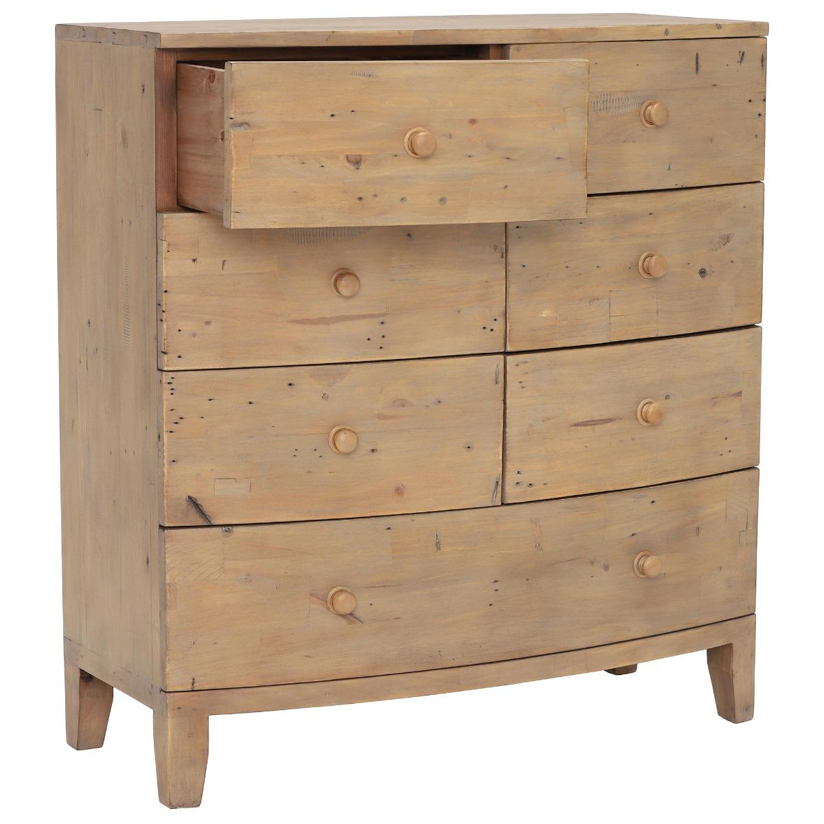 The Lewes 7 Drawer Chest boasts a timeless look that will add charm to any bedroom. Ethically made from reclaimed wood, its warm sundried wheat finish has been subtly distressed for a unique appeal. The 4 Drawer Chest features a curved front with shaker style legs and wooden handles, while four spacious drawers make it a practical storage choice.