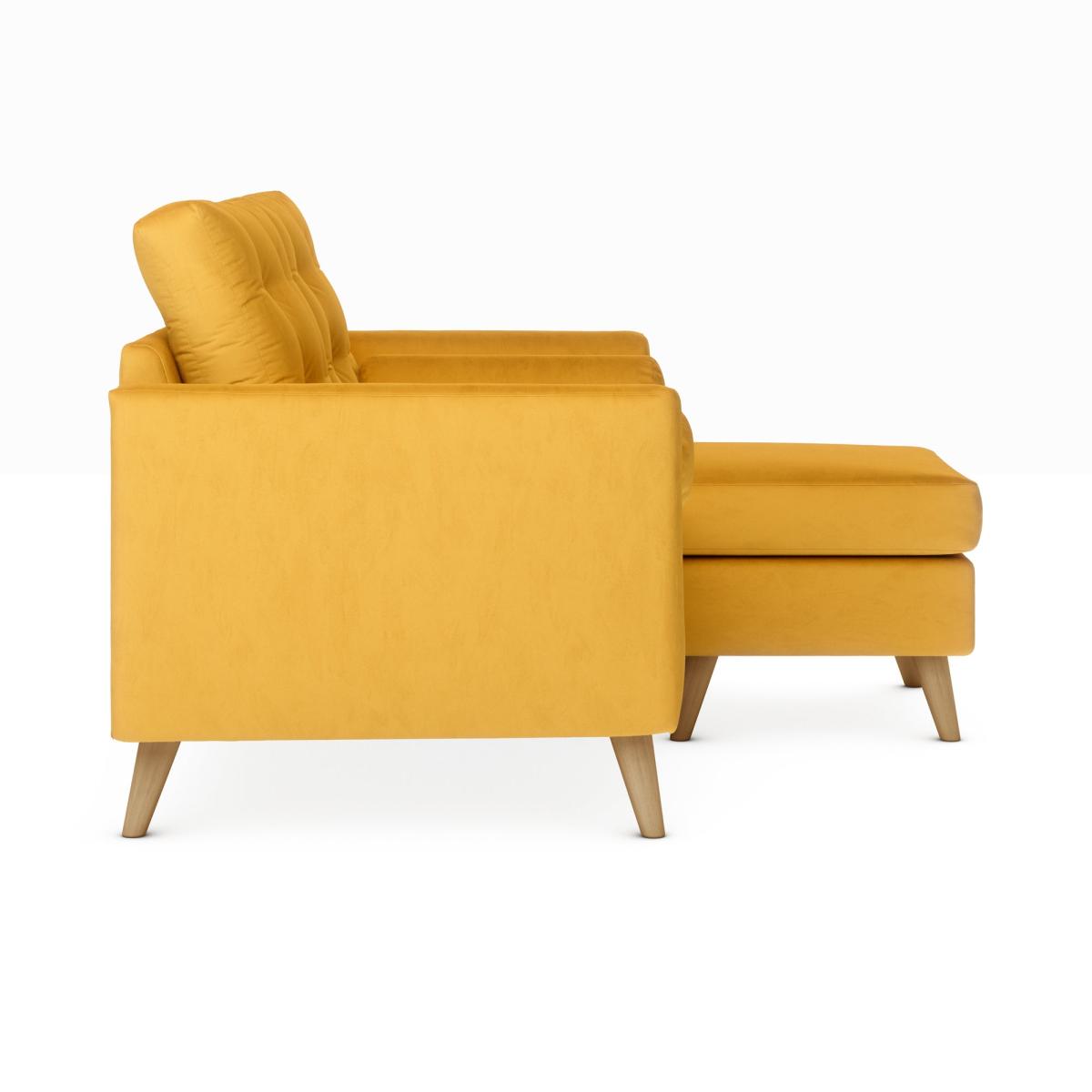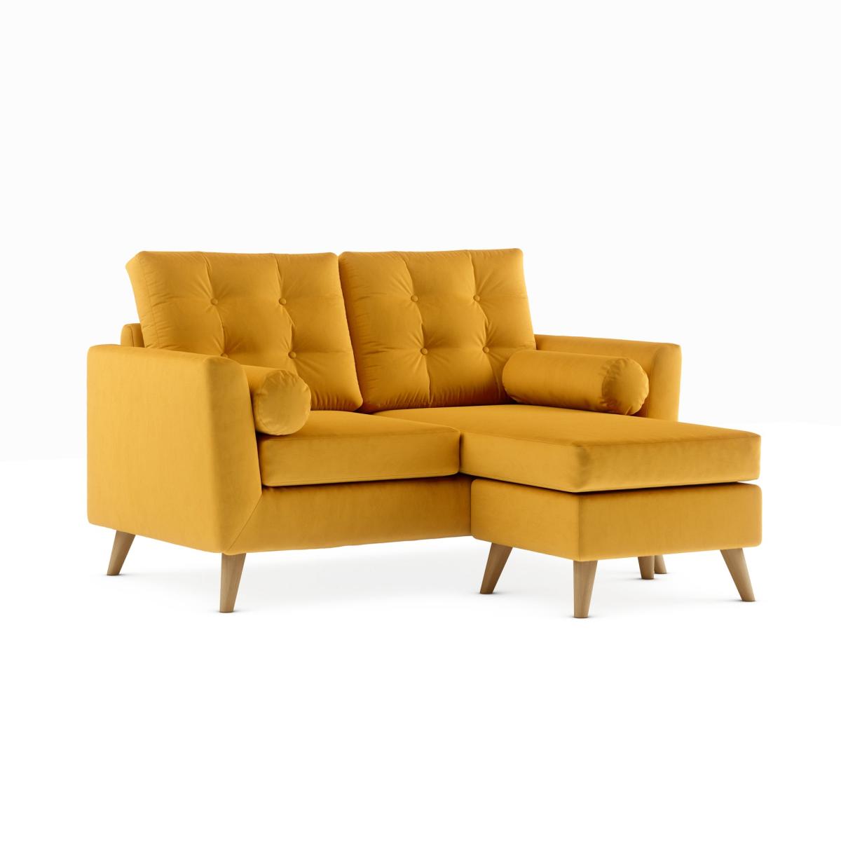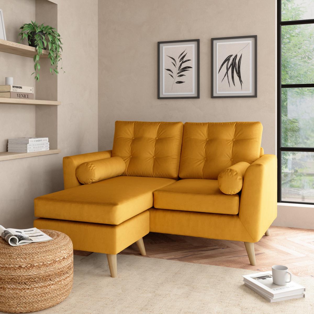 Introduce a stylish mid-century inspired piece to your home with the stylish Lewes compact corner sofa. Available in a choice of trendy colours, this sofa is constructed with a luxury velvet upholstery and styled with gorgeous buttoned back cushions, tapered wood legs, and matching bolster cushions. The Lewes is the perfect place to sit back and unwind, and can even be paired with our matching footstools for even more comfort.