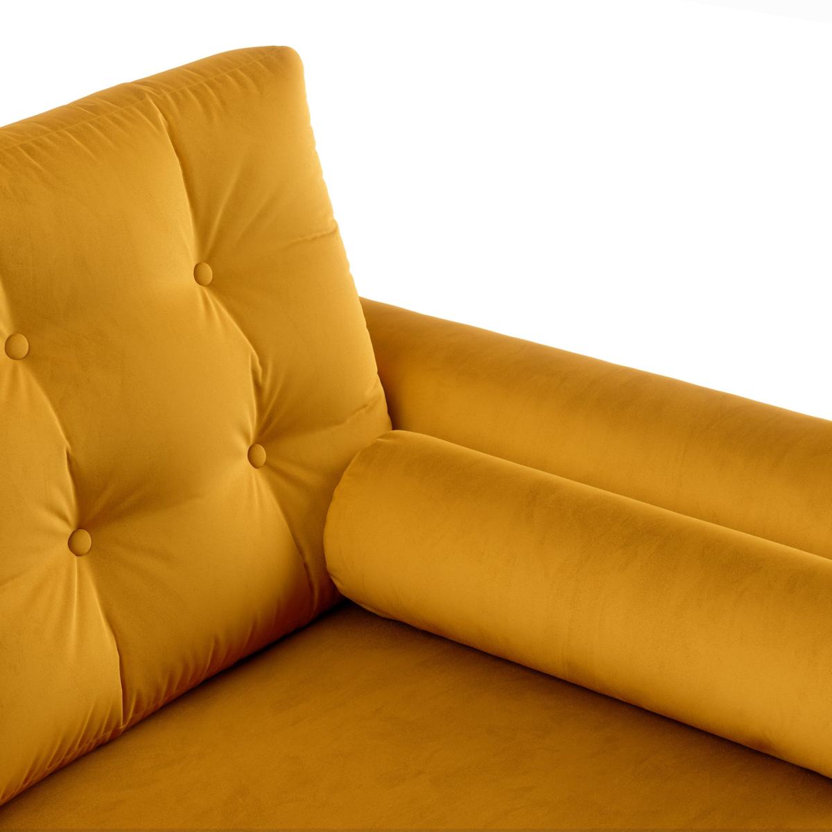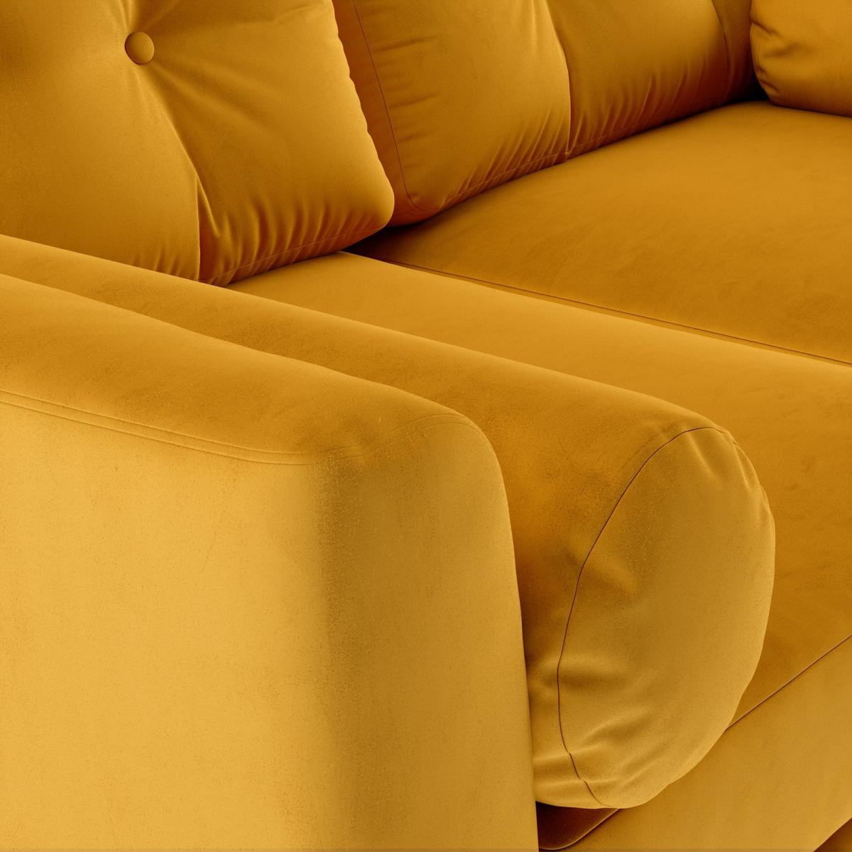 I love this piece because it’s a real statement in a room, thanks to its luxe old gold velvet finish. It works particularly well in contemporary or eclectic interiors, adding a touch of sophistication and warmth. For styling tips, consider pairing it with neutral-toned accessories to let the colour shine, or contrast it with deep, rich textiles like navy or charcoal to create a cosy, layered look. Its compact corner design makes it versatile for smaller spaces or open-plan living, and adding textured cushions or throws will enhance the plush feel without overwhelming the clean lines. Overall, this sofa is practical yet stylish, perfect for creating a focal point that combines comfort with a touch of luxury.