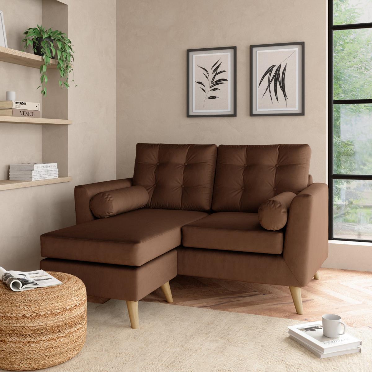 Lewes Luxury Velvet Compact Corner Chaise Luxury Velvet Pinecone