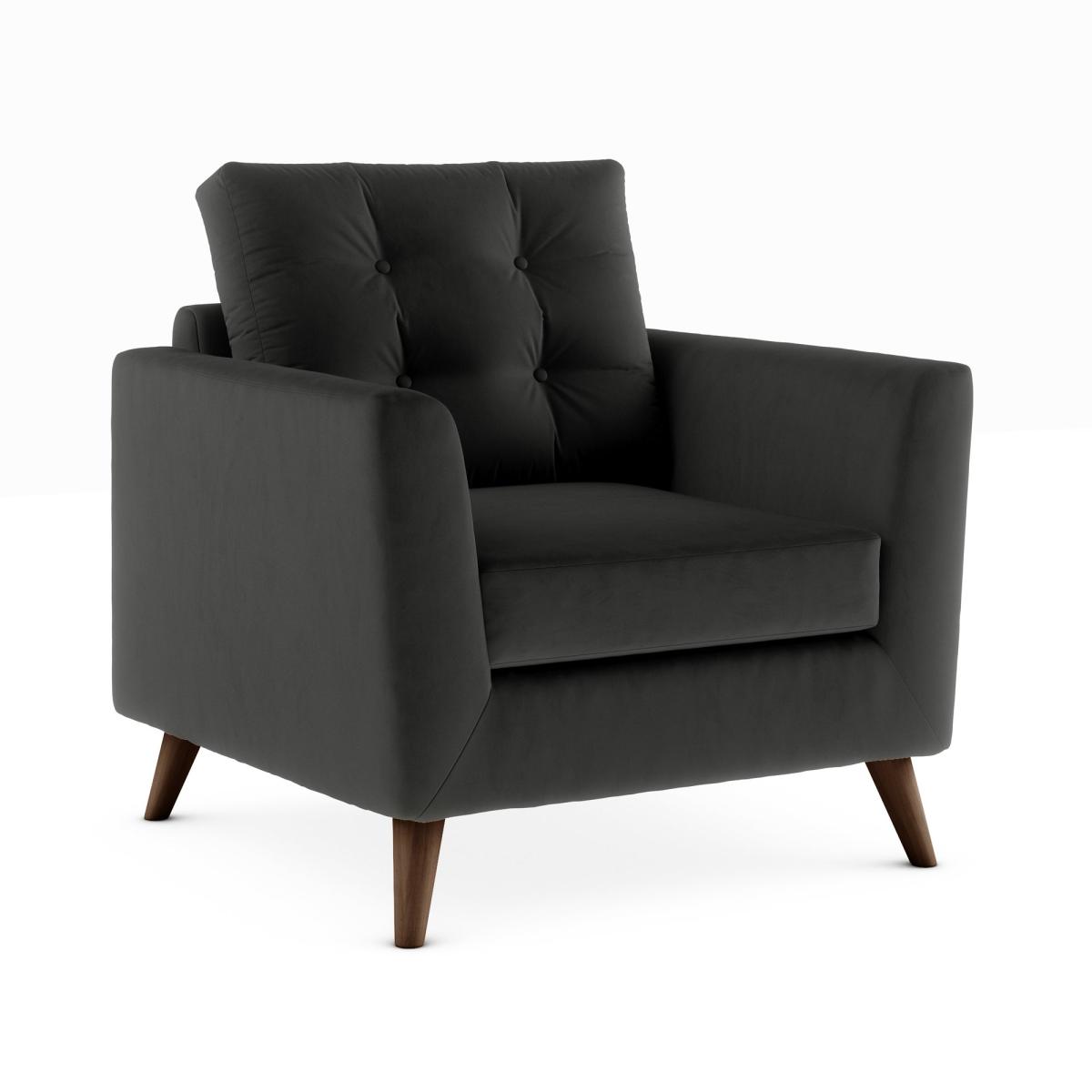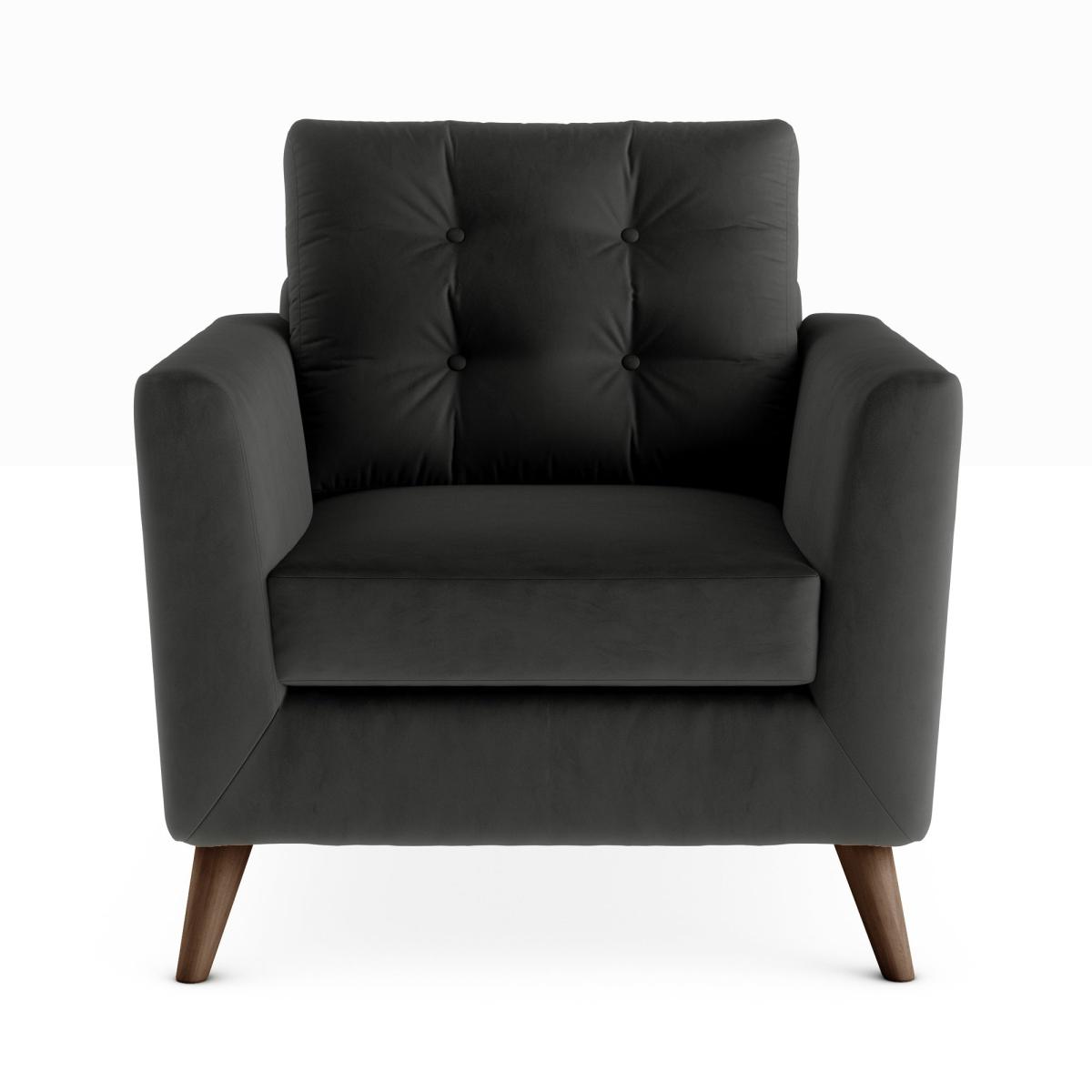 Introduce a stylish mid-century inspired piece to your home with the stylish Lewes snuggle chair. Available in a choice of trendy colours, this sofa is constructed with a soft luxury velvet upholstery and styled with gorgeous buttoned back cushions and tapered wood legs. The Lewes is the perfect place to sit back and unwind, and can even be paired with our matching footstools for even more comfort.