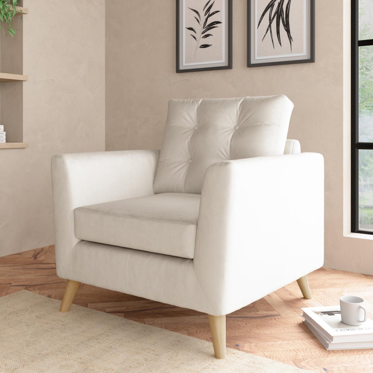I love this armchair for its versatility and sophisticated simplicity. The velvet upholstery adds a touch of luxury without feeling overly formal, making it suitable for both contemporary and classic interiors. Its neutral tone ensures it easily complements bold colours or pattern-heavy schemes, while the slightly tapered legs give it a modern edge. Practical styling tips include pairing it with textured cushions or throws to add depth, or placing it near a statement side table to create a cosy reading nook. This chair works well in living rooms, bedrooms, or even a home office - its understated elegance makes it a flexible piece that elevates any space.