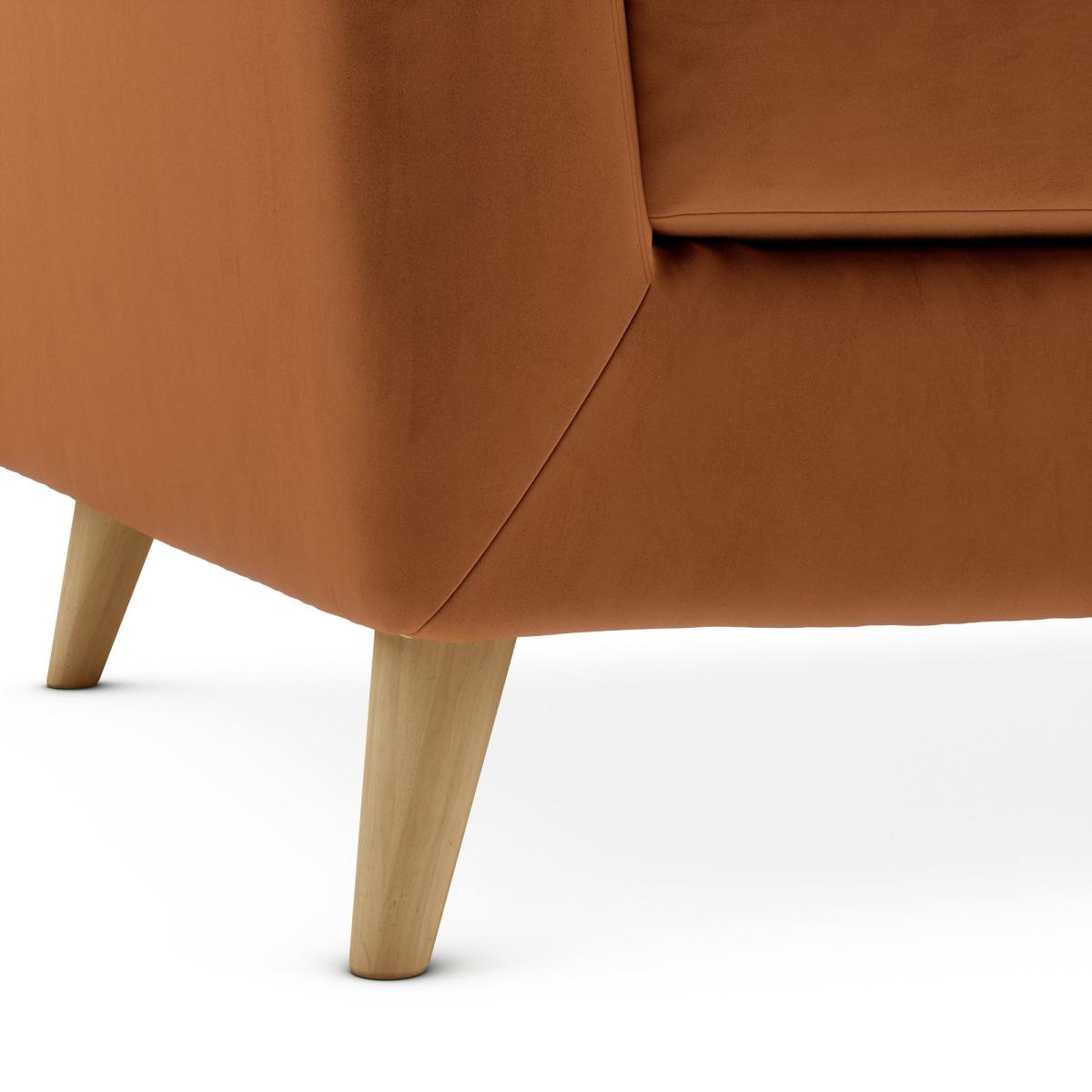 Introduce a stylish mid-century inspired piece to your home with the stylish Lewes snuggle chair. Available in a choice of trendy colours, this sofa is constructed with a soft luxury velvet upholstery and styled with gorgeous buttoned back cushions and tapered wood legs. The Lewes is the perfect place to sit back and unwind, and can even be paired with our matching footstools for even more comfort.