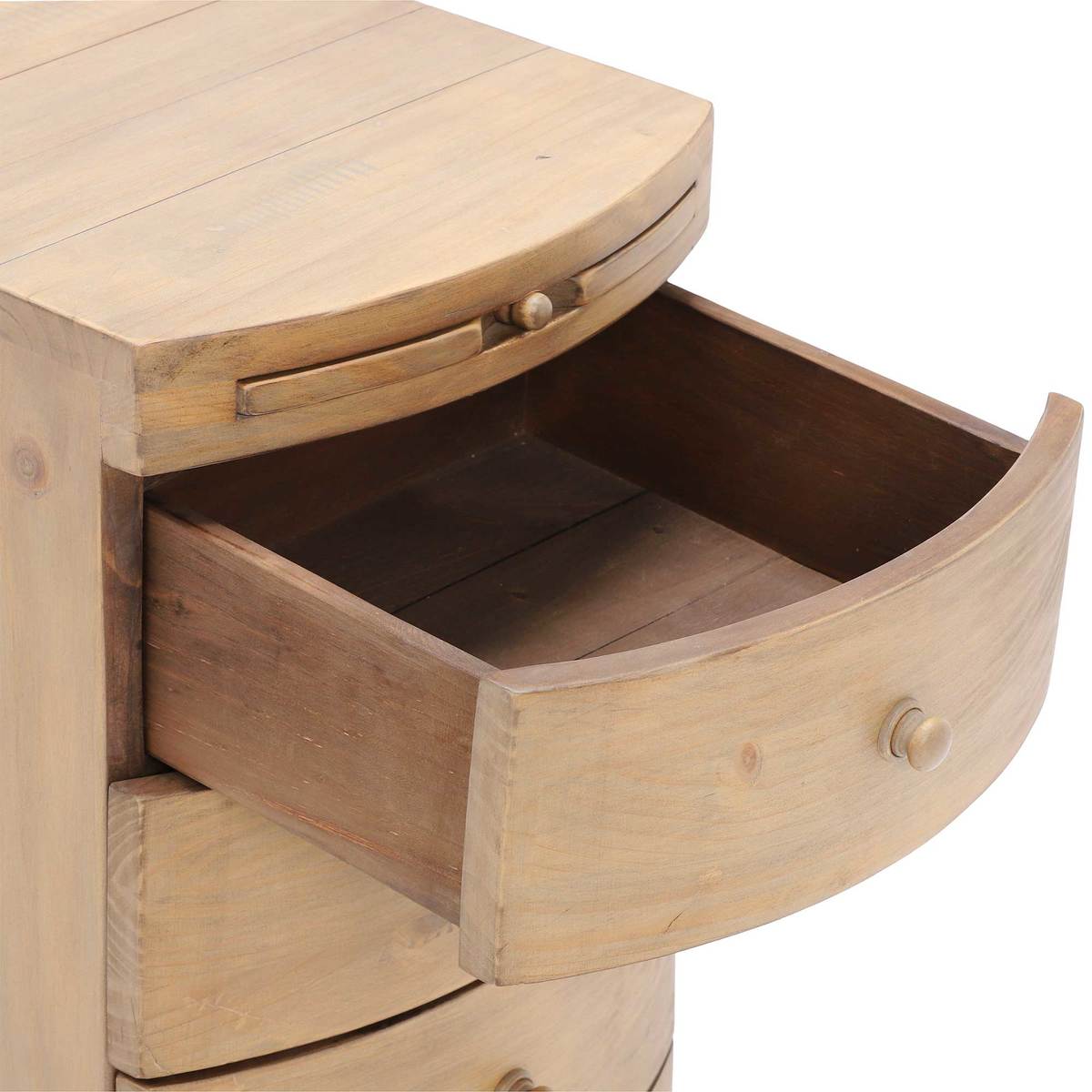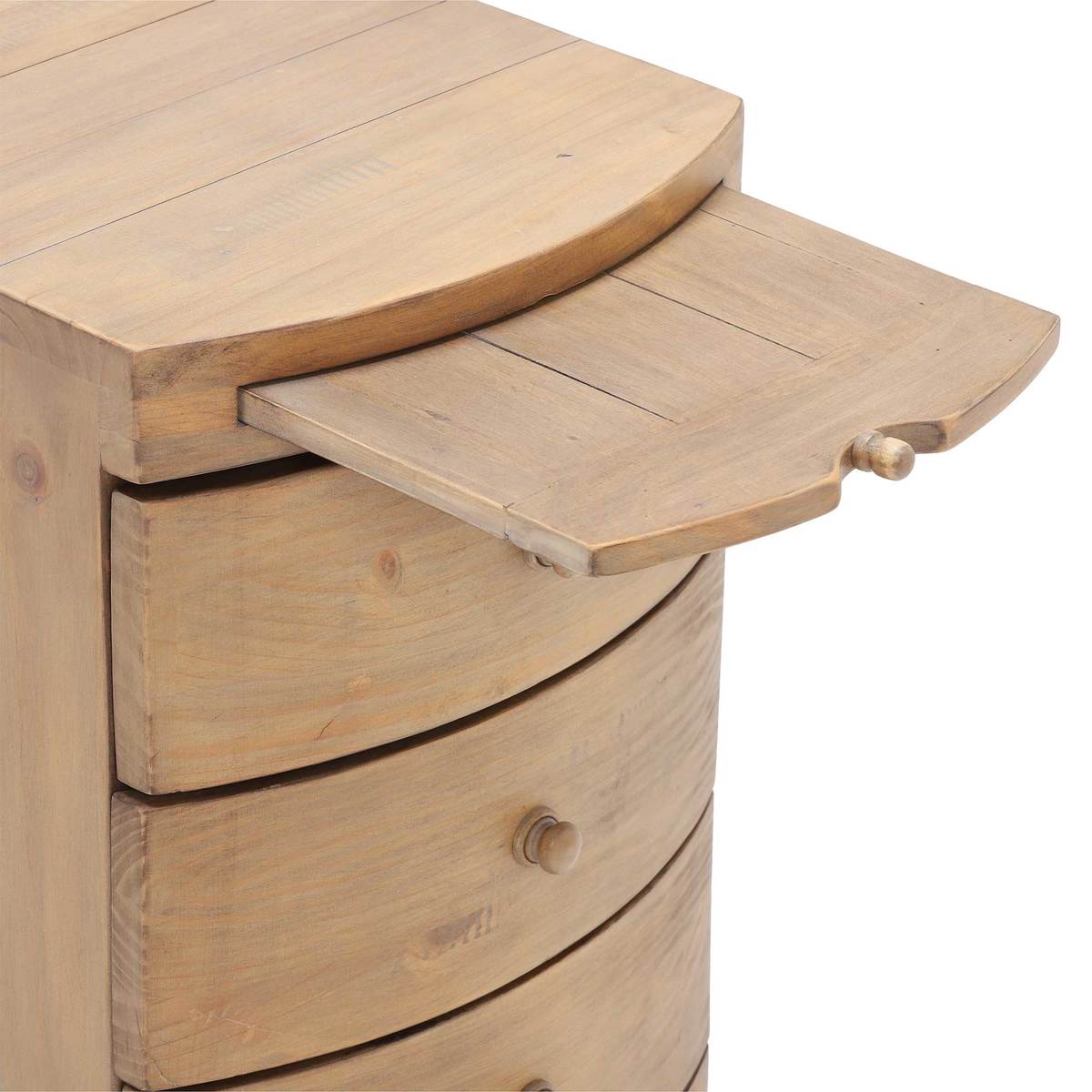 Create a beautifully relaxed bedroom scene with the Lewes furniture range. The Lewes 3 Drawer Bedside Chest will add the perfect finishing touch, made from reclaimed wood with a warm sundried wheat finish. The curved fronted chest feature shaker style legs and wooden handles, while a pull out coffee slider and three drawers make this a practical addition to any bedside.