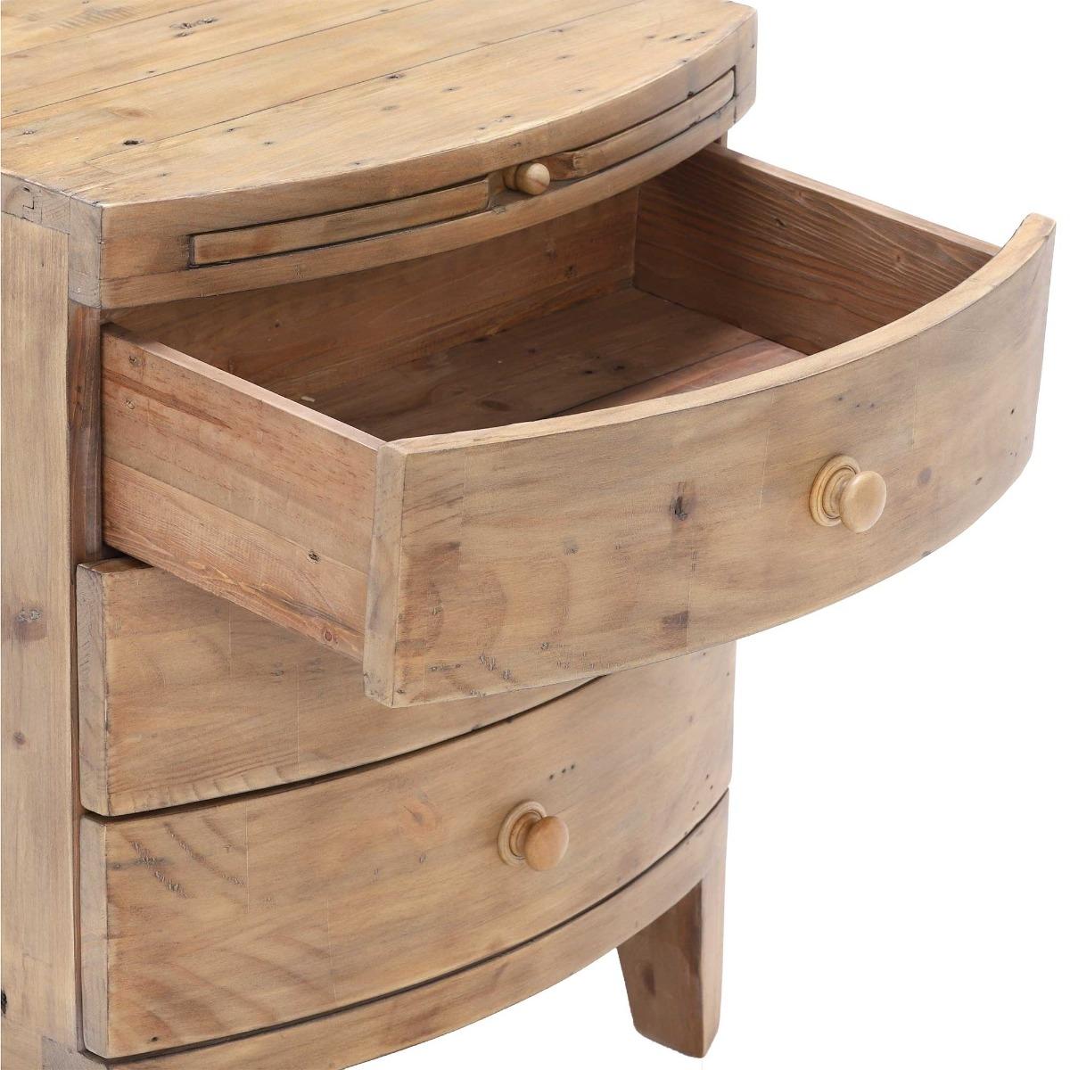 Design. Create a beautifully relaxed bedroom scene with the Lewes furniture range. The Lewes 3 Drawer Wide Bedside Chest will add the perfect finishing touch. Made from reclaimed wood with a warm sundried wheat finish, it features a curved front, shaker style legs and wooden handles. A pull out coffee slider and three spacious drawers make this a practical addition to any bedside.