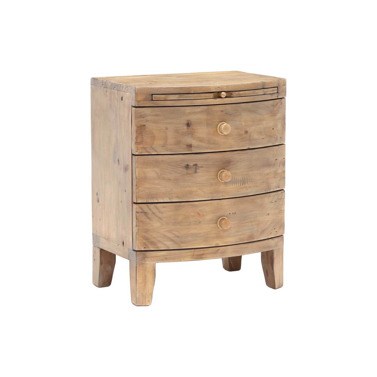 Lewes Reclaimed Wood 3 Drawer Wide Bedside, Wheat