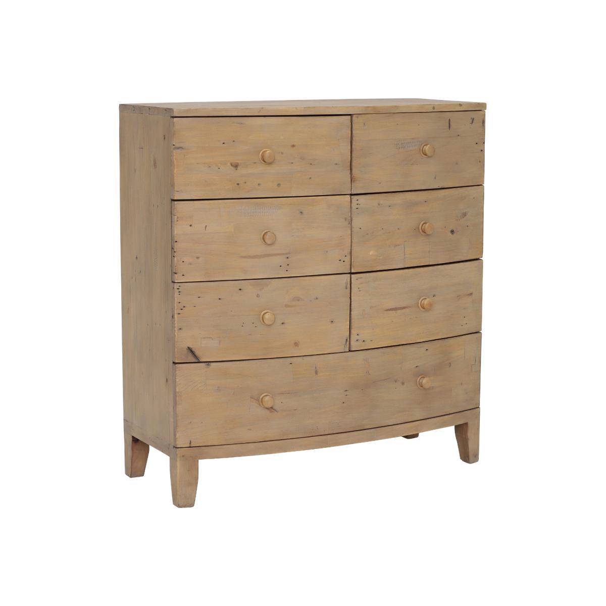 Design. The Lewes 7 Drawer Chest boasts a timeless look that will add charm to any bedroom. Ethically made from reclaimed wood, its warm sundried wheat finish has been subtly distressed for a unique appeal. The 4 Drawer Chest features a curved front with shaker style legs and wooden handles, while four spacious drawers make it a practical storage choice.