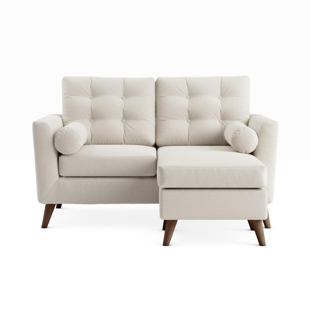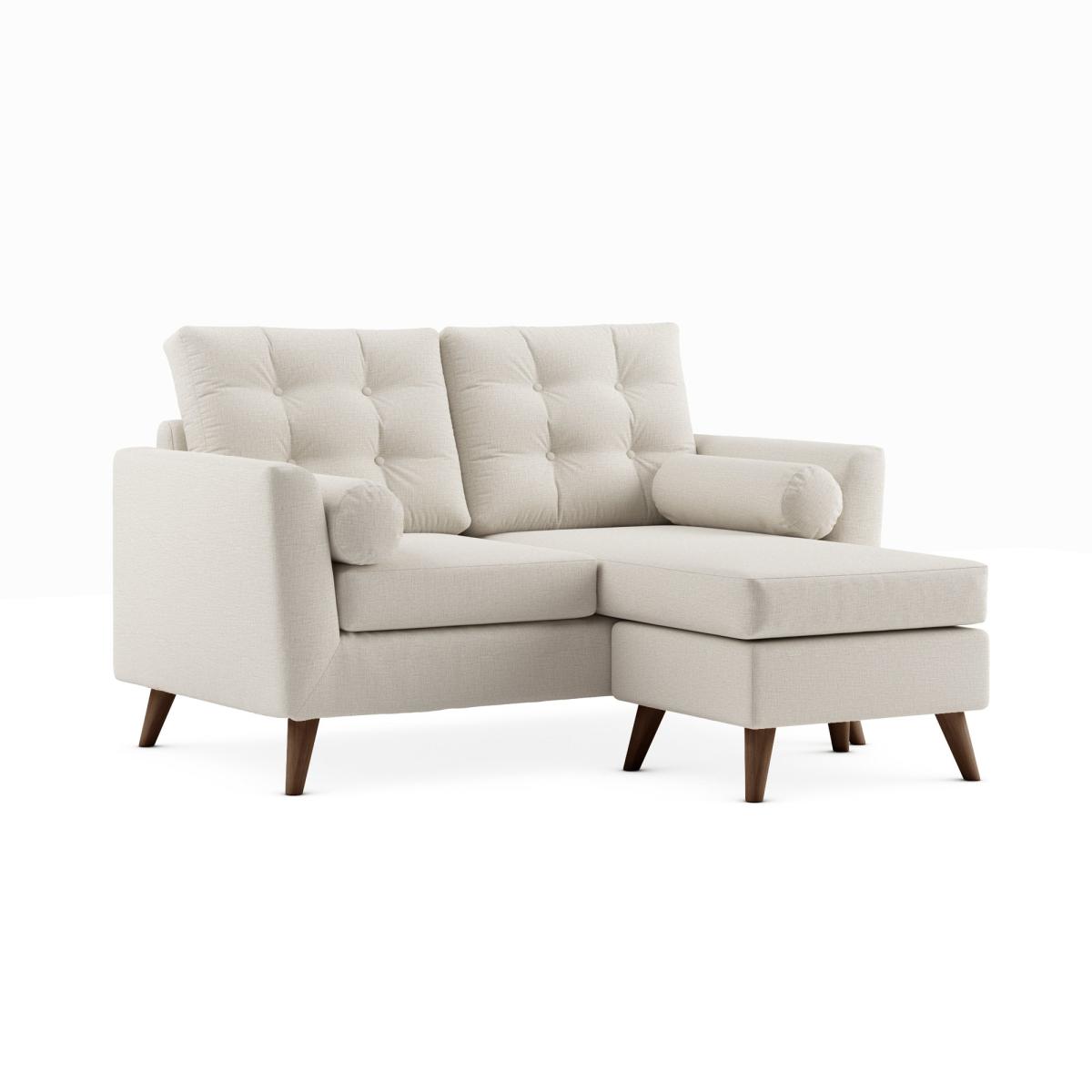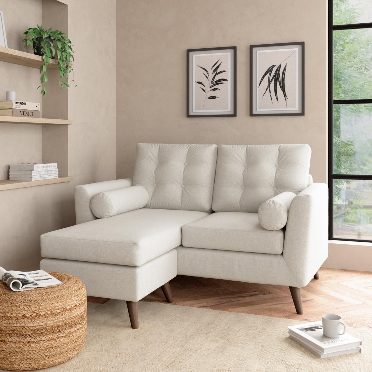 Introduce a stylish mid-century inspired piece to your home with the stylish Lewes compact corner sofa. Available in a choice of trendy colours, this sofa is constructed with a soft textured weave upholstery and styled with gorgeous buttoned back cushions, tapered wood legs, and matching bolster cushions. The Lewes is the perfect place to sit back and unwind, and can even be paired with our matching footstools for even more comfort.