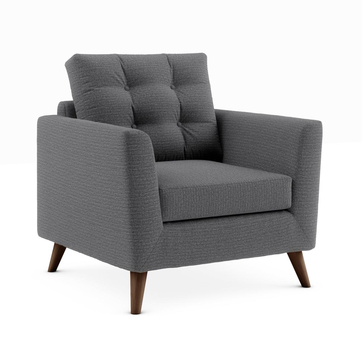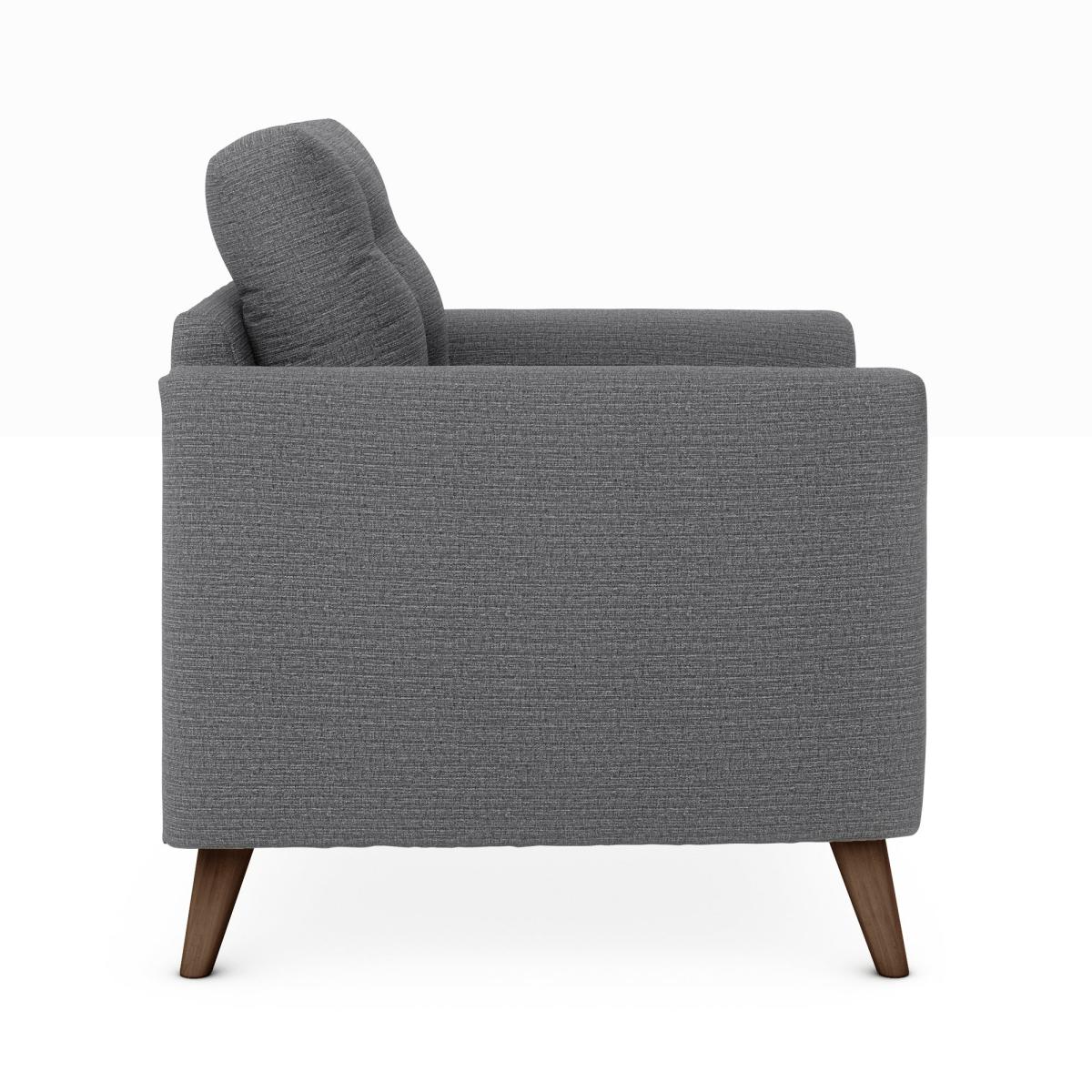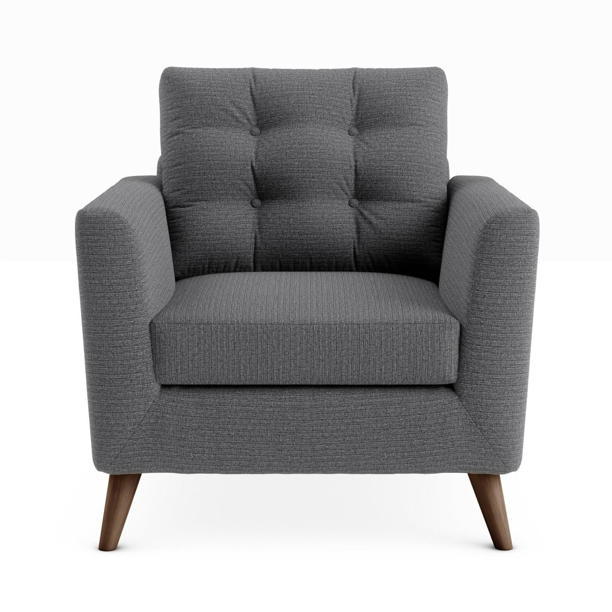 Introduce a stylish mid-century inspired piece to your home with the stylish Lewes snuggle chair. Available in a choice of trendy colours, this sofa is constructed with a soft textured weave upholstery and styled with gorgeous buttoned back cushions and tapered wood legs. The Lewes is the perfect place to sit back and unwind, and can even be paired with our matching footstools for even more comfort.