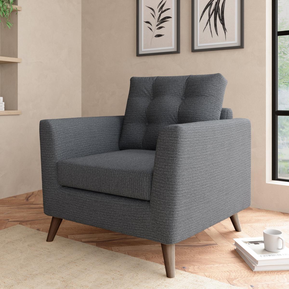 I love this armchair because of its textured weave, which adds subtle visual interest without overwhelming the space. The dark graphite shade makes it versatile enough to sit within both contemporary and more traditional interiors, especially when paired with lighter or softer colour schemes for contrast. It works well in cosy corners or living rooms that benefit from tactile layers and muted tones. For styling, consider adding cushions in contrasting fabrics or gentle patterns to soften the look further, and pair it with a sleek side table or a cosy throw to invite relaxation. Its sturdy yet inviting design makes it a practical choice for creating a welcoming and stylish seating area.