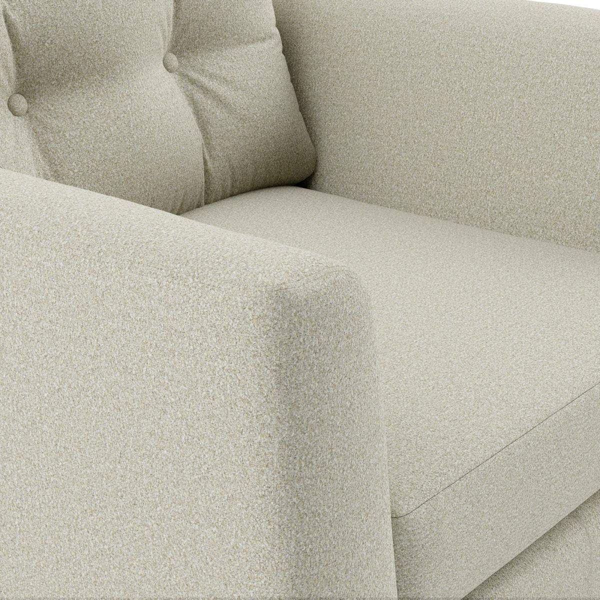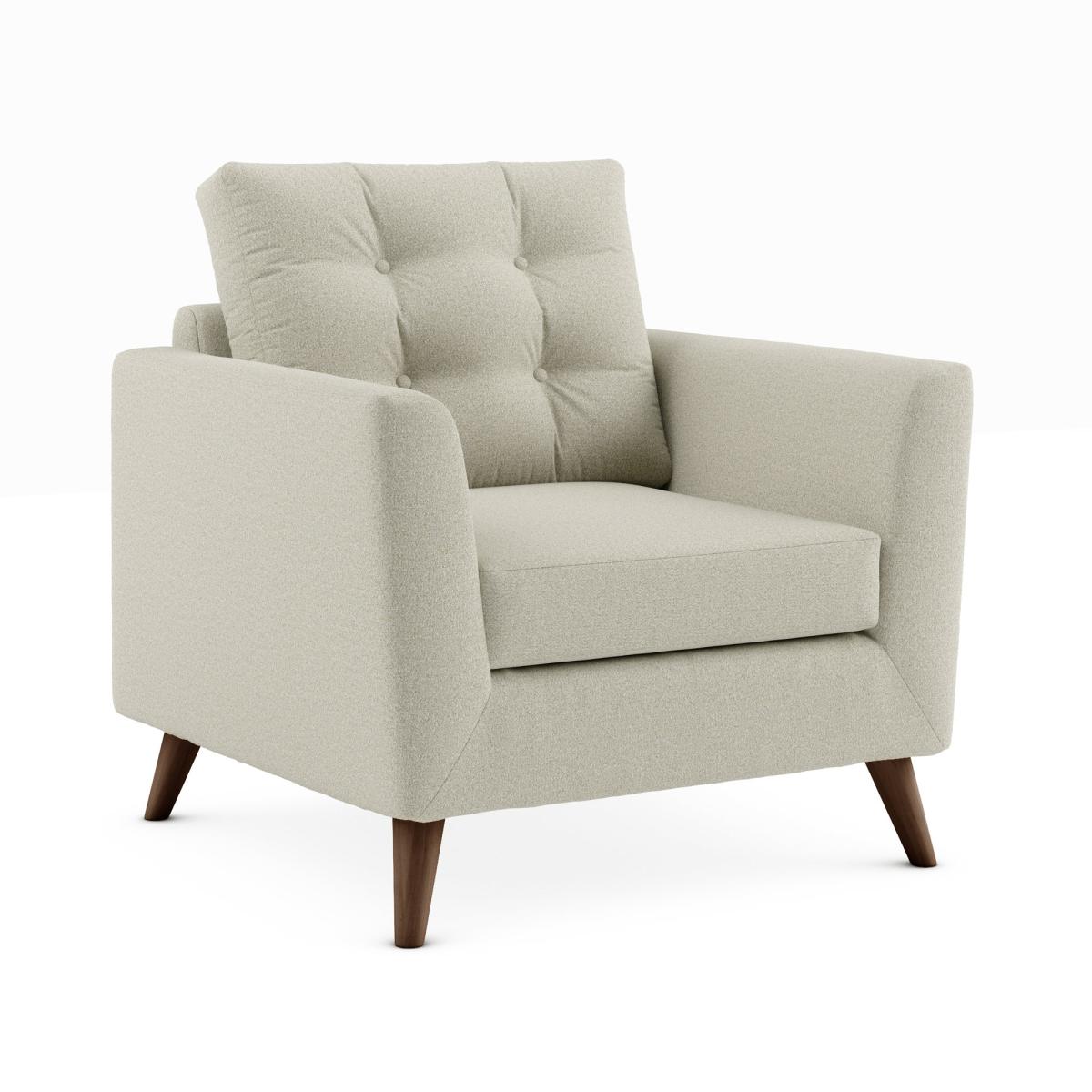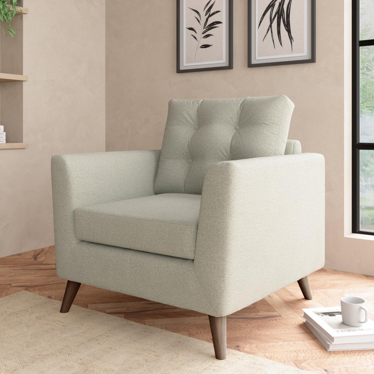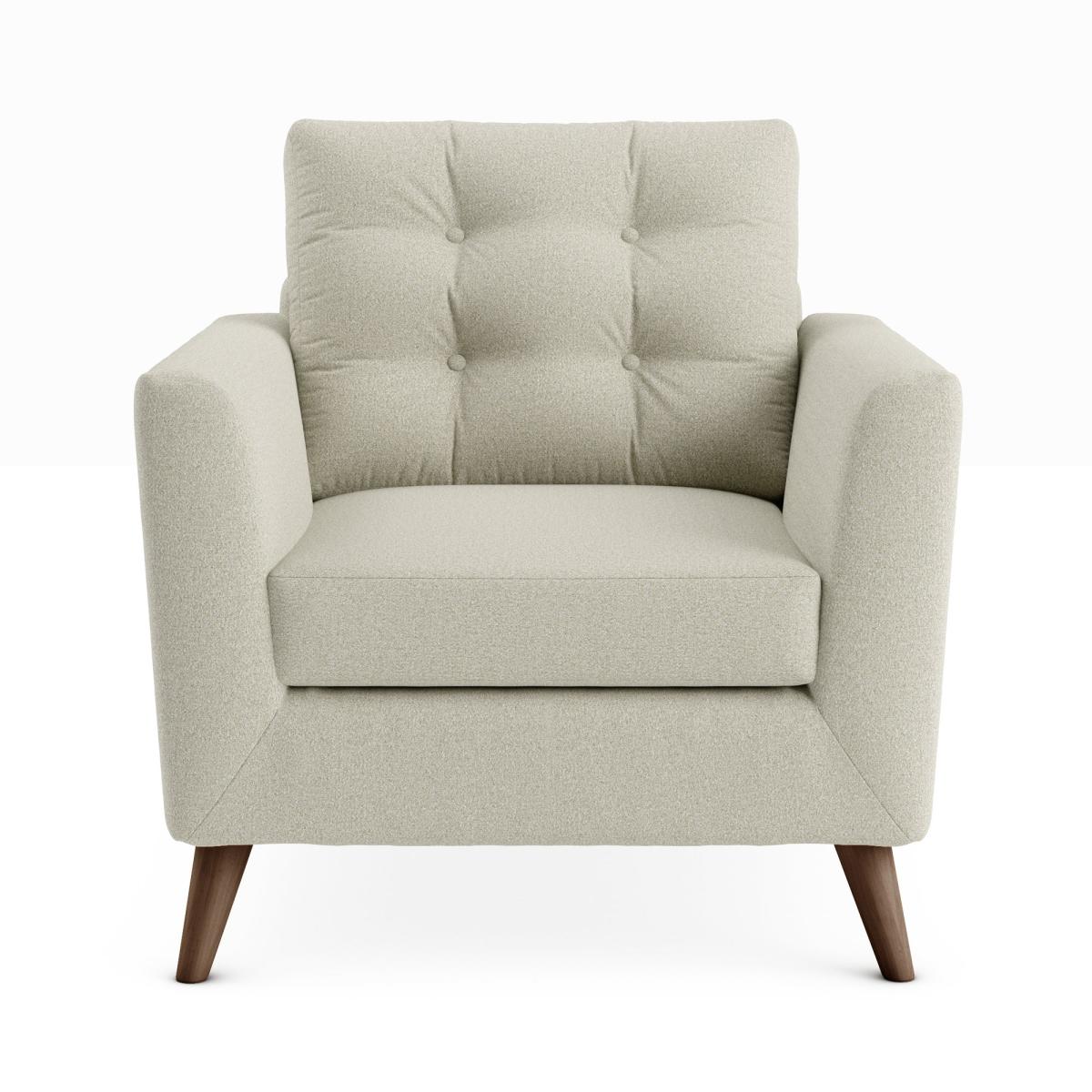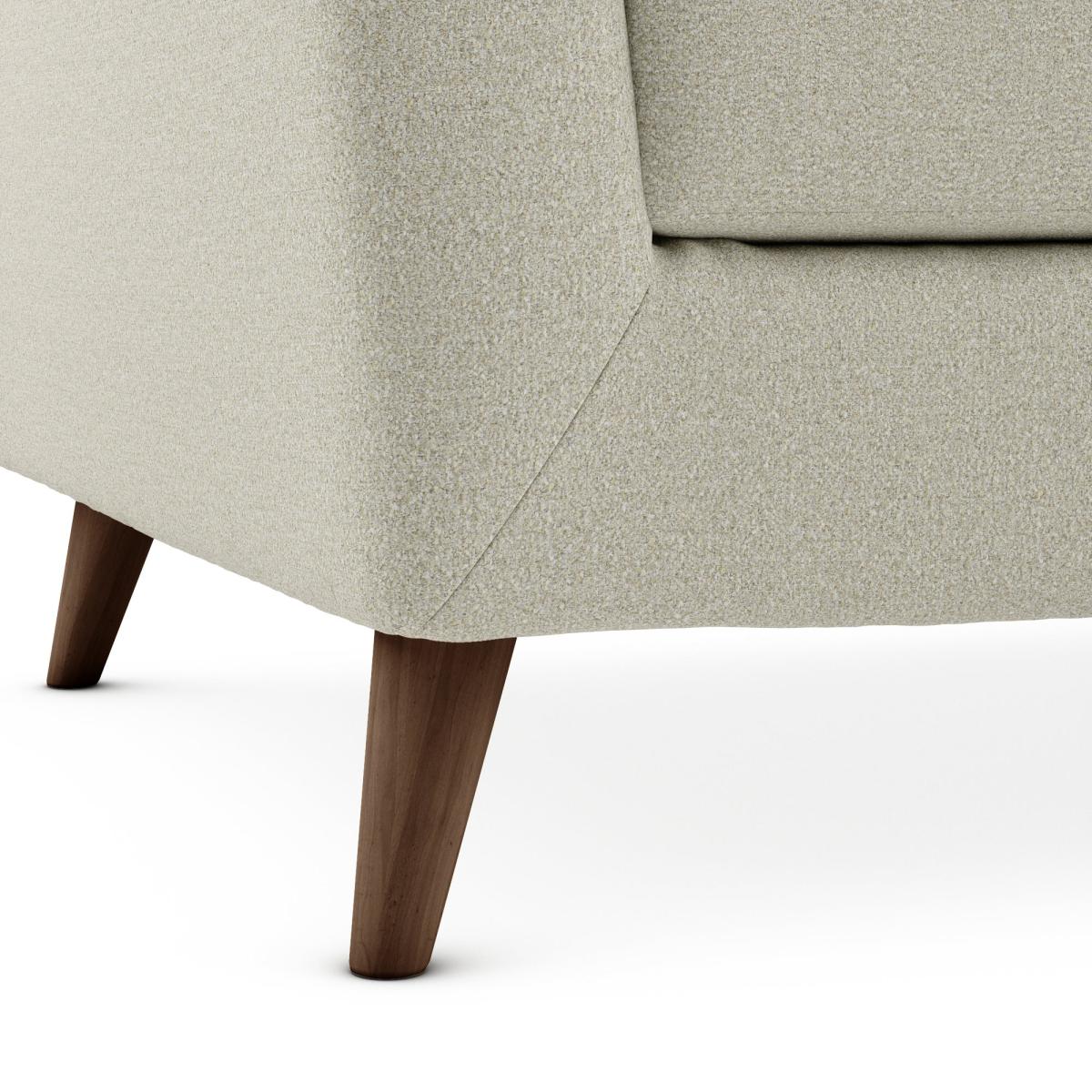 Introduce a stylish mid-century inspired piece to your home with the stylish Lewes snuggle chair. Available in a choice of trendy colours, this sofa is constructed with a soft marl upholstery and styled with gorgeous buttoned back cushions and tapered wood legs. The Lewes is the perfect place to sit back and unwind, and can even be paired with our matching footstools for even more comfort.
