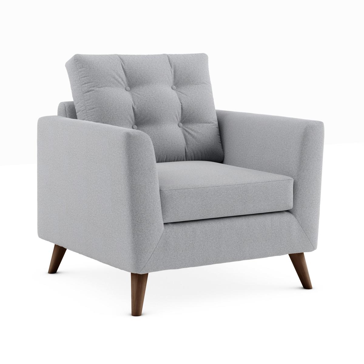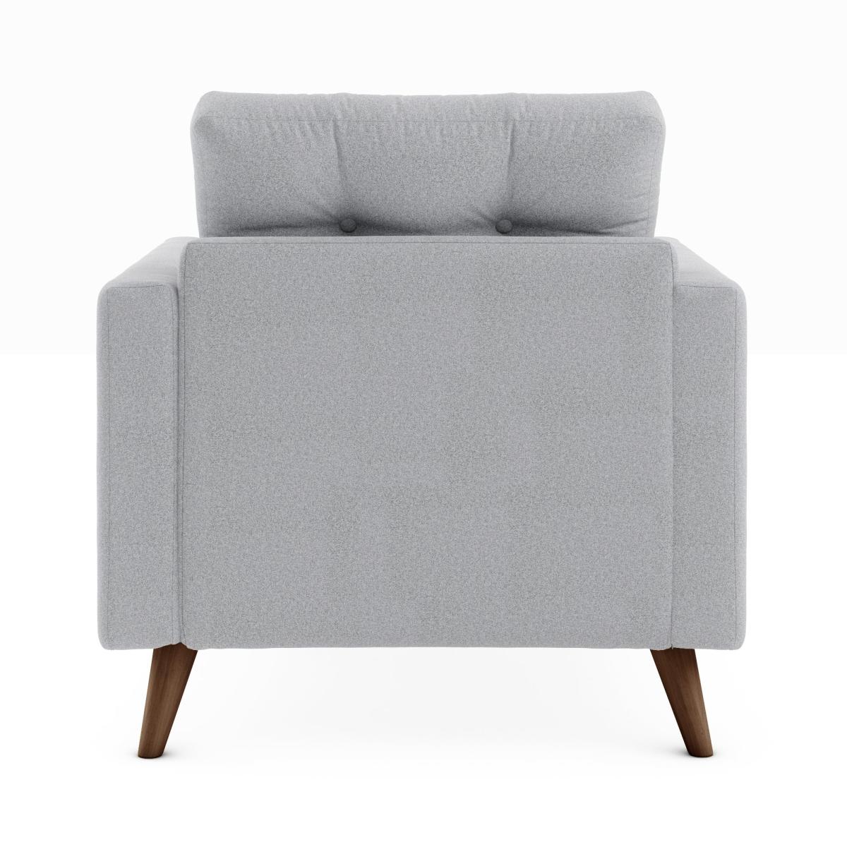 Introduce a stylish mid-century inspired piece to your home with the stylish Lewes snuggle chair. Available in a choice of trendy colours, this sofa is constructed with a soft marl upholstery and styled with gorgeous buttoned back cushions and tapered wood legs. The Lewes is the perfect place to sit back and unwind, and can even be paired with our matching footstools for even more comfort.