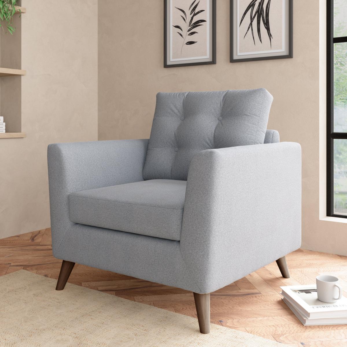 I love this armchair because of its cosy woolly marl fabric and understated warm grey tone, which makes it versatile for a variety of interiors. It works particularly well in modern, Scandinavian-inspired spaces due to its clean lines and textured fabric, but could also bring a soft, inviting touch to a more traditional or eclectic room. To style it effectively, consider pairing with tapered wooden legs or a plush throw and cushions to add comfort and colour contrast. Practical tips include placing it near a window with good natural light to highlight the fabric’s texture, or clustering it with other neutral pieces for a layered, inviting sitting area. Its approachable size and neutral hue make it a flexible piece that can anchor cosy corners or serve as a statement in more open plans.