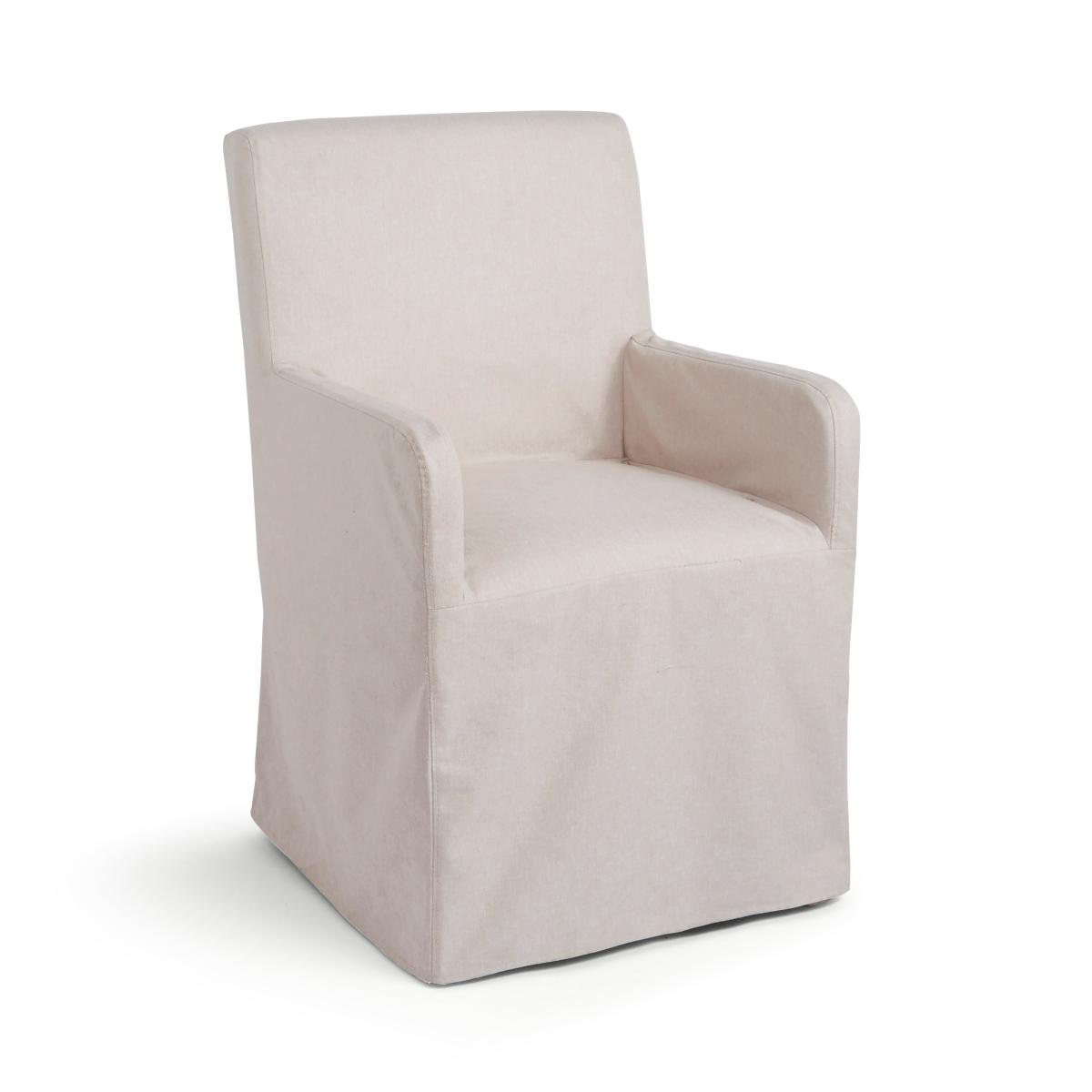 * Simple aesthetic* Loose cover* Mid height arms* Padded, fixed back* Classic design This classically designed Lewin Carver Dining Chair is the perfect way to introduce style and comfort to your dining space. The padded, fixed back and foam filling ensures support and softness, whilst the high quality loose cover drapes wonderfully to create a simple silhouette. The arms are the ideal mid-height, and altogether, this chair is a great addition to any home. Please note: Cover is dry clean only. Please steam to remove creases.