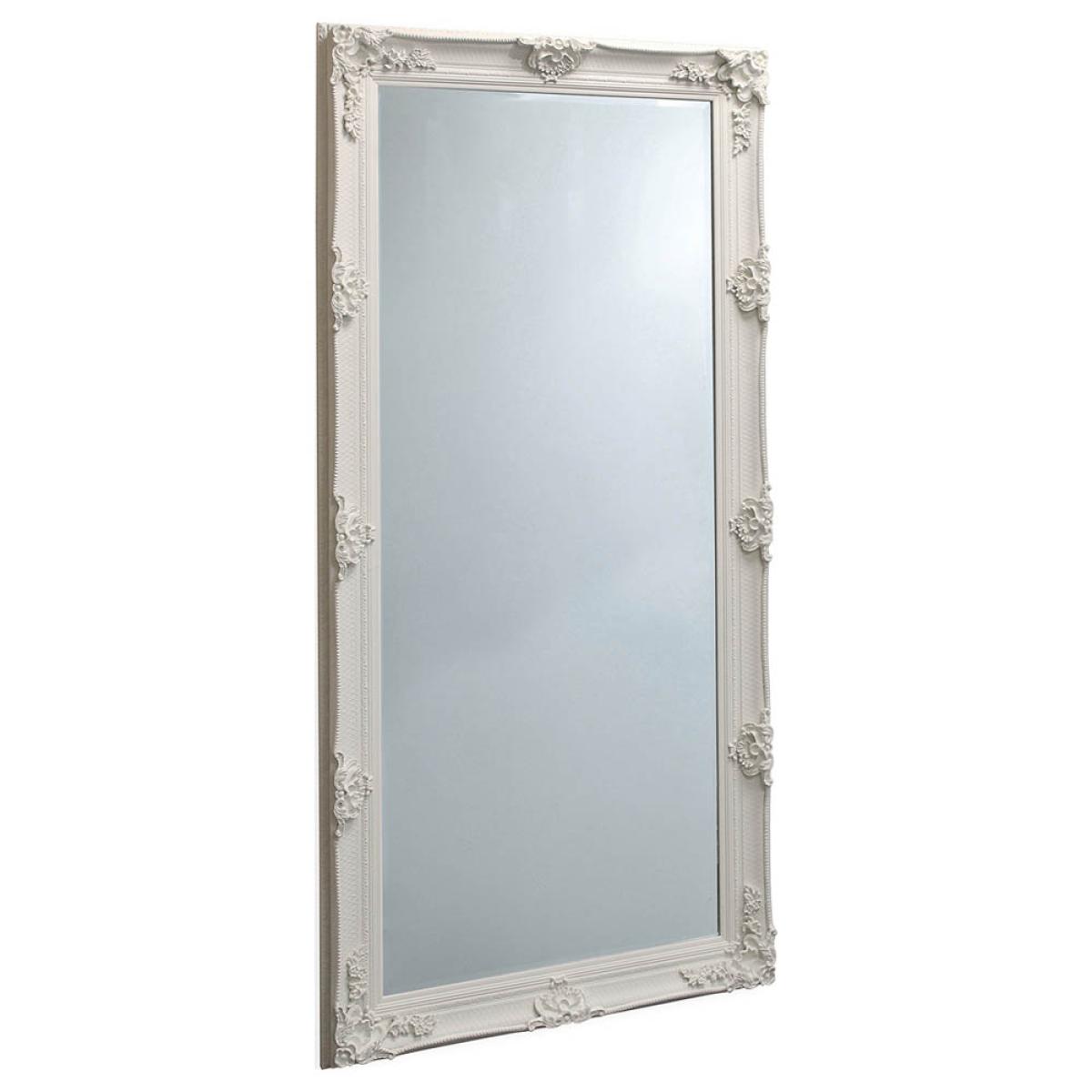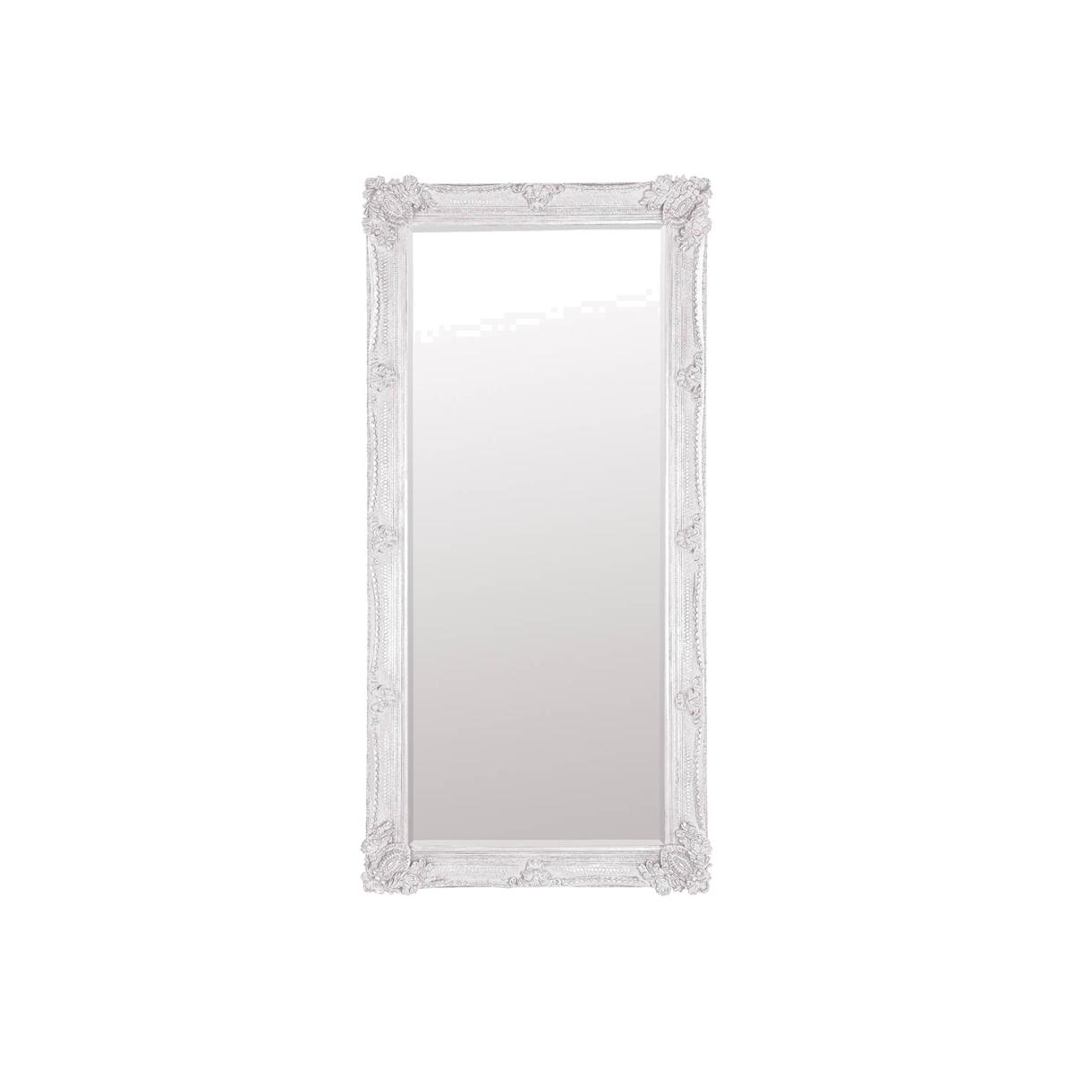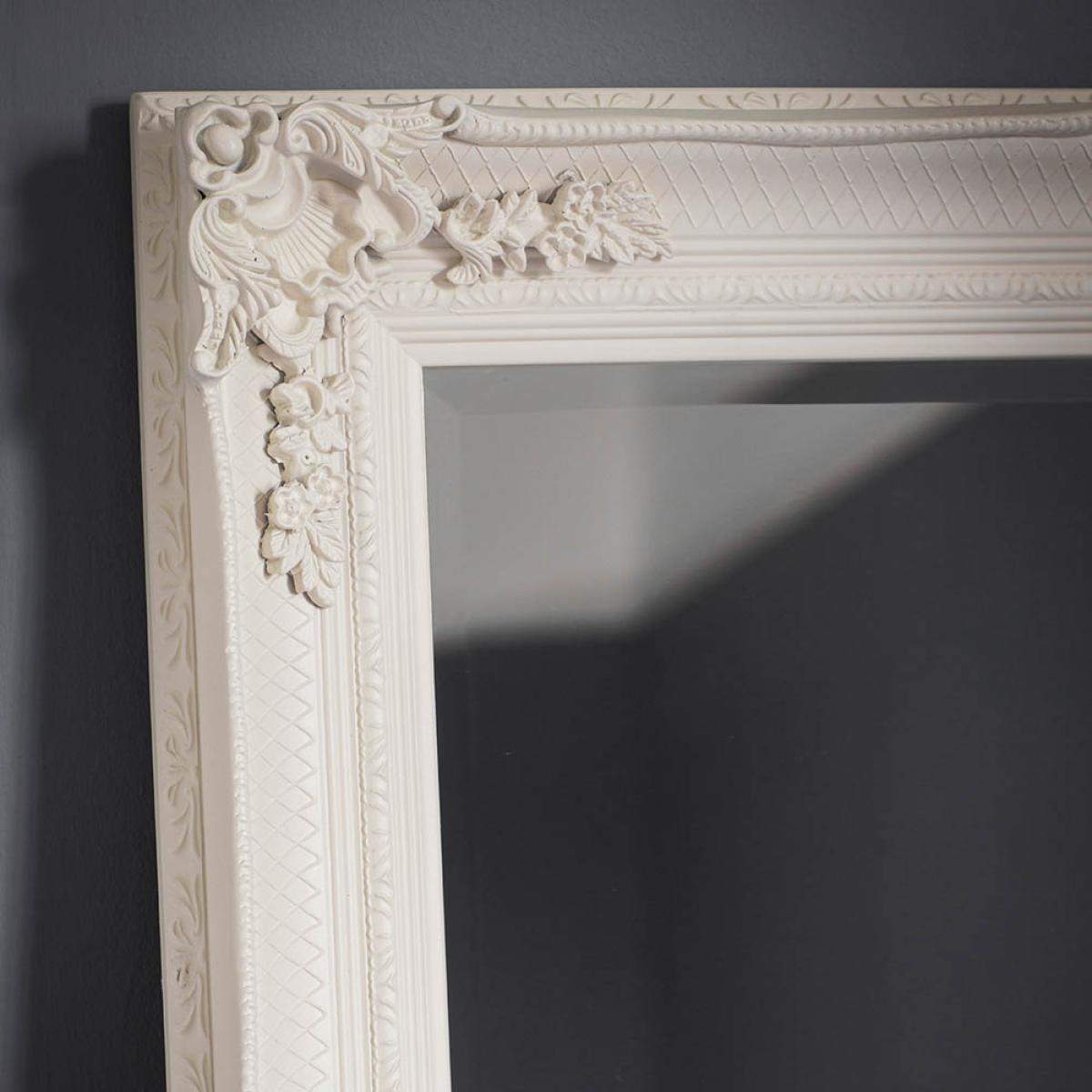 Beautiful hand crafted baroque style wood framed mirror. Shape: Rectangle. Material: Glass, Resin, Wood. Colour/Finish: Cream. Mount Type: Leaner.