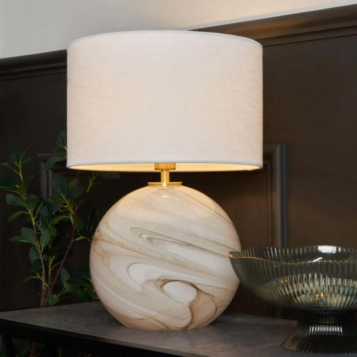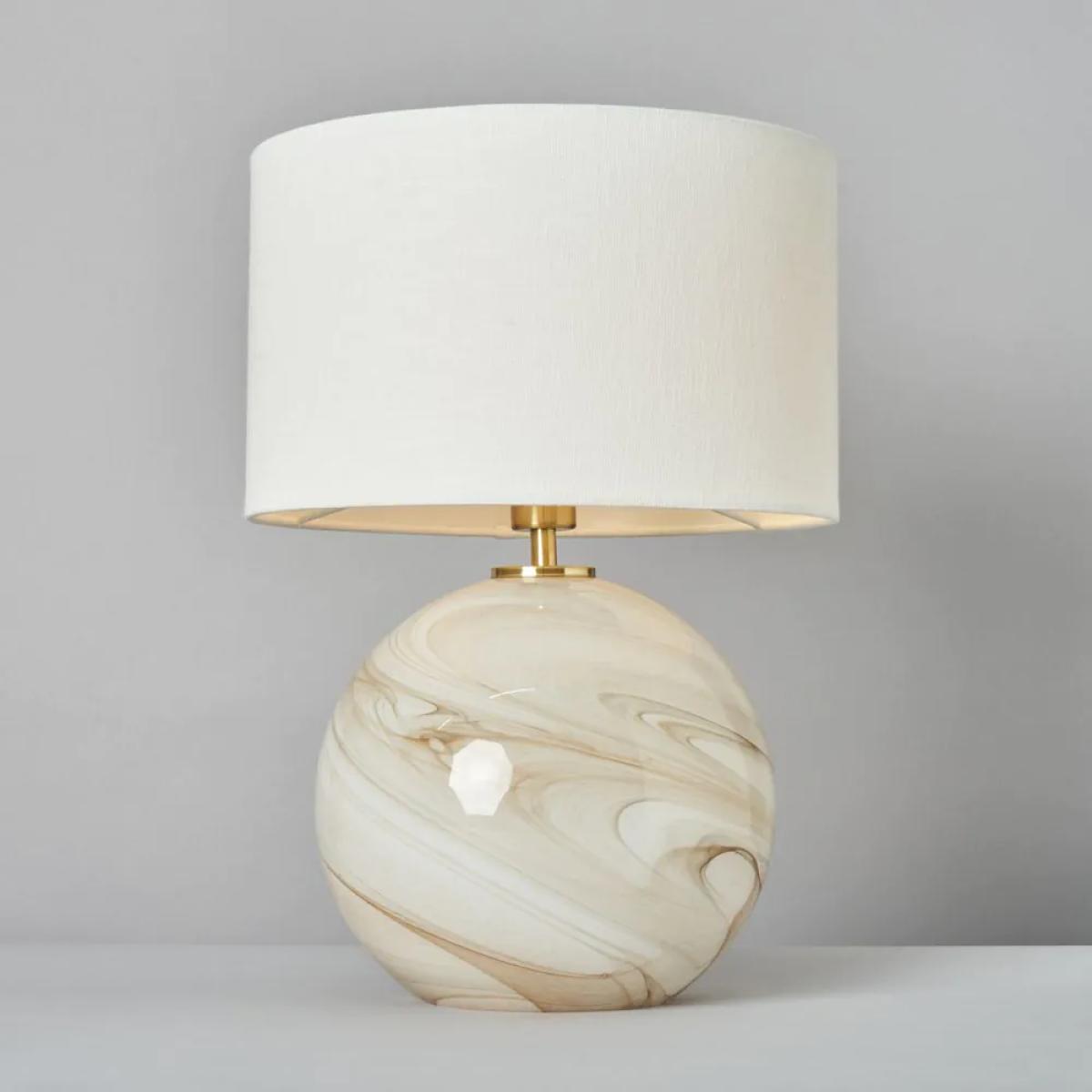 I love the simplicity and elegance of the Lewis Glass Ball table lamp-its marble base adds a sophisticated touch that can elevate both classic and contemporary interiors. It works particularly well in neutrally styled rooms, such as a minimalist lounge or a chic bedside table, where its smooth curves and natural veins provide subtle interest without overwhelming the space. When styling, consider pairing it with textured textiles or matte finishes to create a balanced look, and use it to add soft, ambient lighting - perfect for creating cosy corners or making a console table feel more inviting. Its timeless appeal makes it versatile enough to serve as both a functional source of light and a decorative accent.