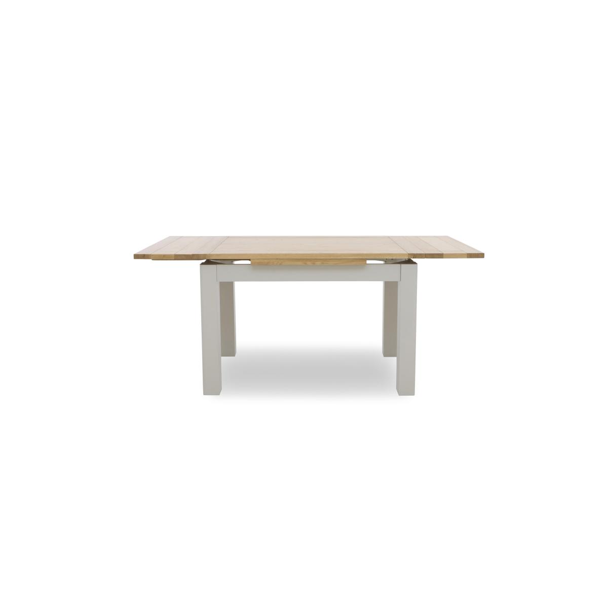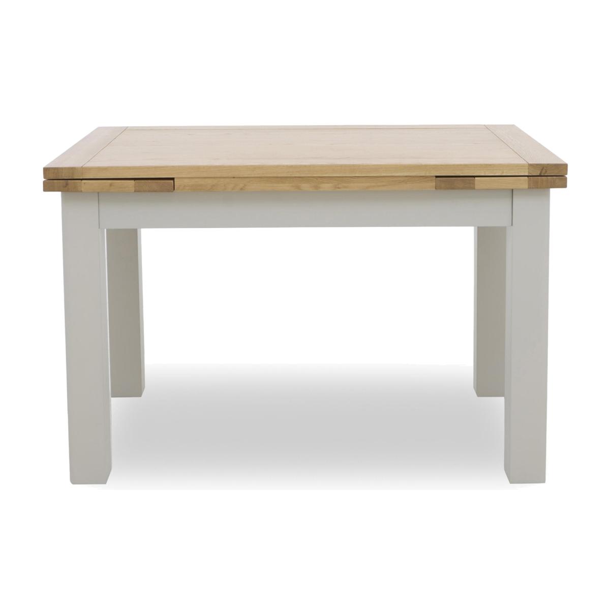 With its natural oak and soft grey painted finish, our expertly crafted Lewis large draw leaf extending dining table delivers charm, style and family-friendly durability alongside truly exceptional value. Why you'll love it Lovely painted wood and oak furniture at an exceptional price. Soft grey finish is perfect for your modern country, Scandi style or coastal chic home. This large draw leaf extending dining table is expertly crafted in oak and oak veneer. The apron and legs are painted twice for a beautiful and hardwearing finish. A clear lacquer protects and enhances the oak top. Timeless design with chunky lines and substantial proportions. Easily extends to seat 8. 2 extra leaves are hidden in the table ends. Only at Furniture Village. This large draw leaf extending dining table is part of our Furnitureland Lewis range. What you need to know Made from oak and oak veneer. This 120 cm draw leaf dining table seats 6 closed and extends to 180 cm to seat 8. No two pieces of wood or veneer are the same. Variations in colour will occur. Avoid placing in direct sunlight or close to a heat source. We recommend using coasters and placemats at all times. Wipe clean with a damp cloth and then dry using a soft duster. Spills should be wiped immediately and the surface dried. Do not use silicon-based furniture polish or abrasive cleaners. Item code: LWISTBL2--001