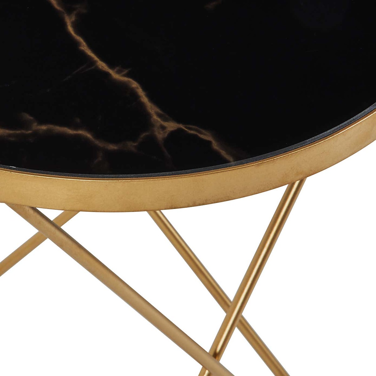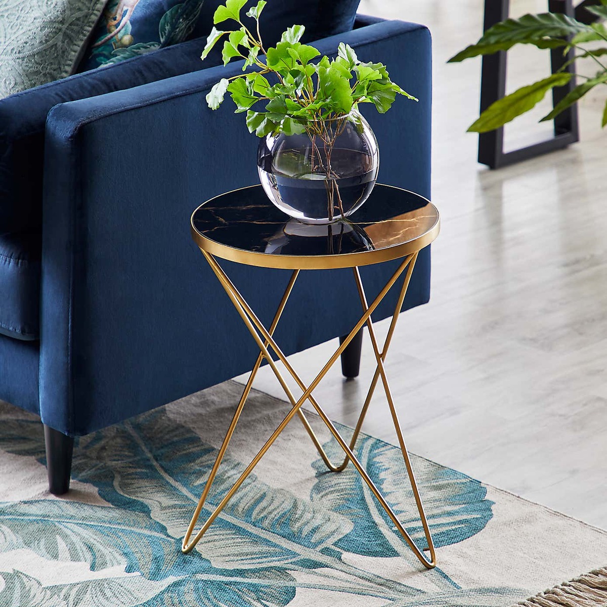 I love the sleek look of the black marble effect side table - it's a versatile piece that adds sophistication without overpowering a space. Its black top with subtle veining makes it ideal for modern, contemporary, or even luxe interiors, and it works well as an accent in a monochrome scheme or against lighter colour palettes. For styling, consider pairing it with a statement lamp, a decorative tray, or a small plant for a curated look. Its minimalist gold frame makes it a great option for smaller spaces or as a side for a cosy reading nook. Practical tip: it’s sturdy enough for a cup of tea or a few small accessories, making it both stylish and functional.