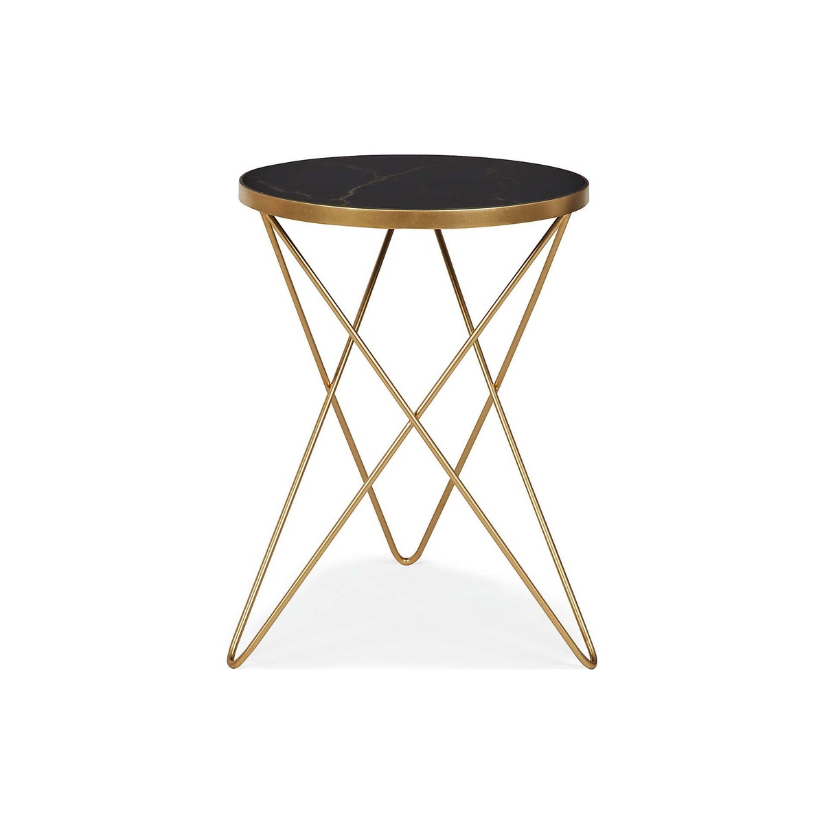 Boasting a modern luxe design with its gold-effect hairpin metal legs and realistic marble-effect tempered glass tabletop, the Lexi Side table is sure to bring a touch of elegance to your home. Its compact and versatile design makes it ideal for use in any room and comes fully assembled for added convenience. Item fully assembled.
