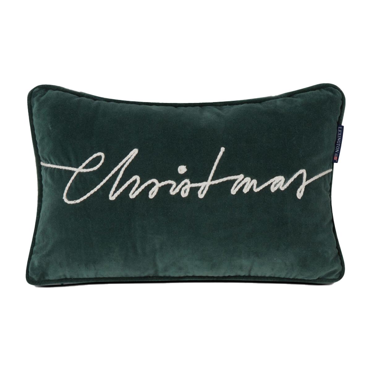Lexington Christmas Cotton Velvet cushion 30x50 cm Green
