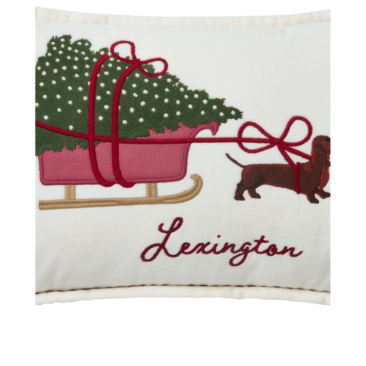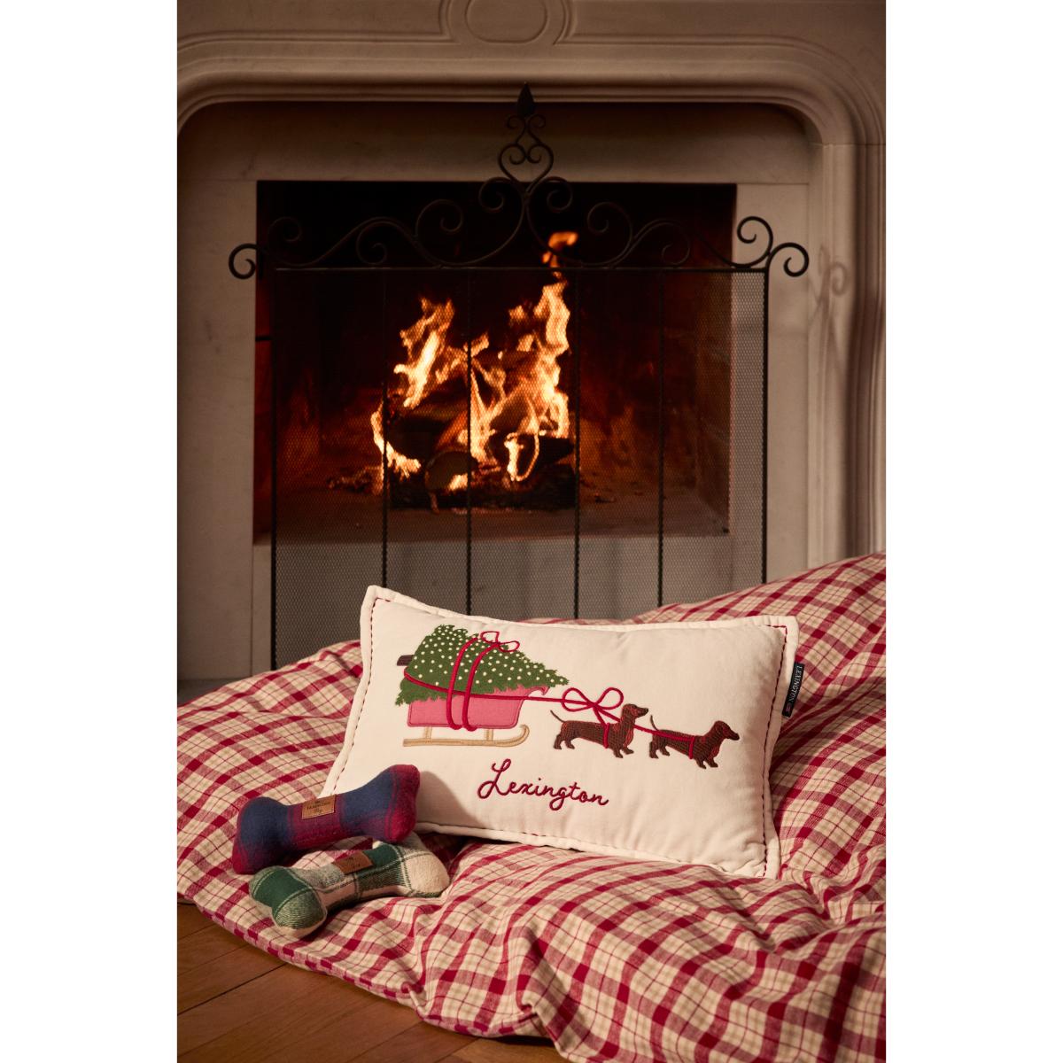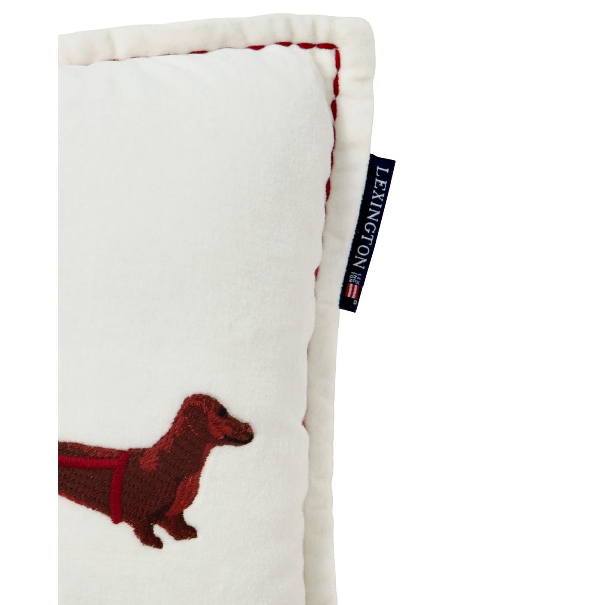 Lexington Dog sleigh organic velvet cotton cushion 30x50 cm White