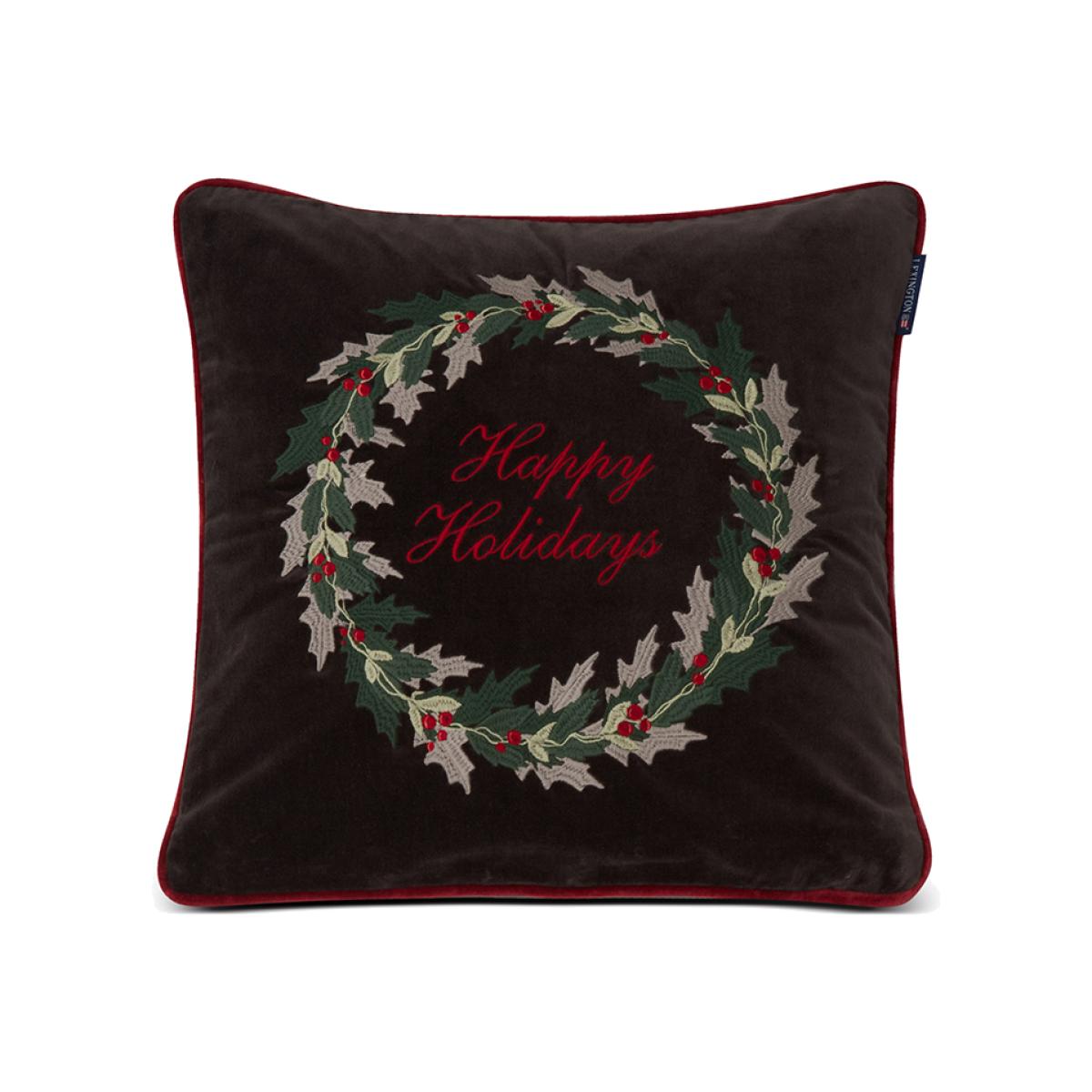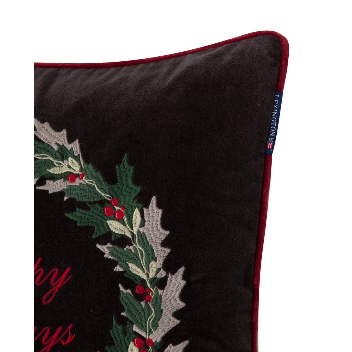 Lexington Holly Wrath Cotton Velvet cushion cover 50x50 cm Dark grey-green-red