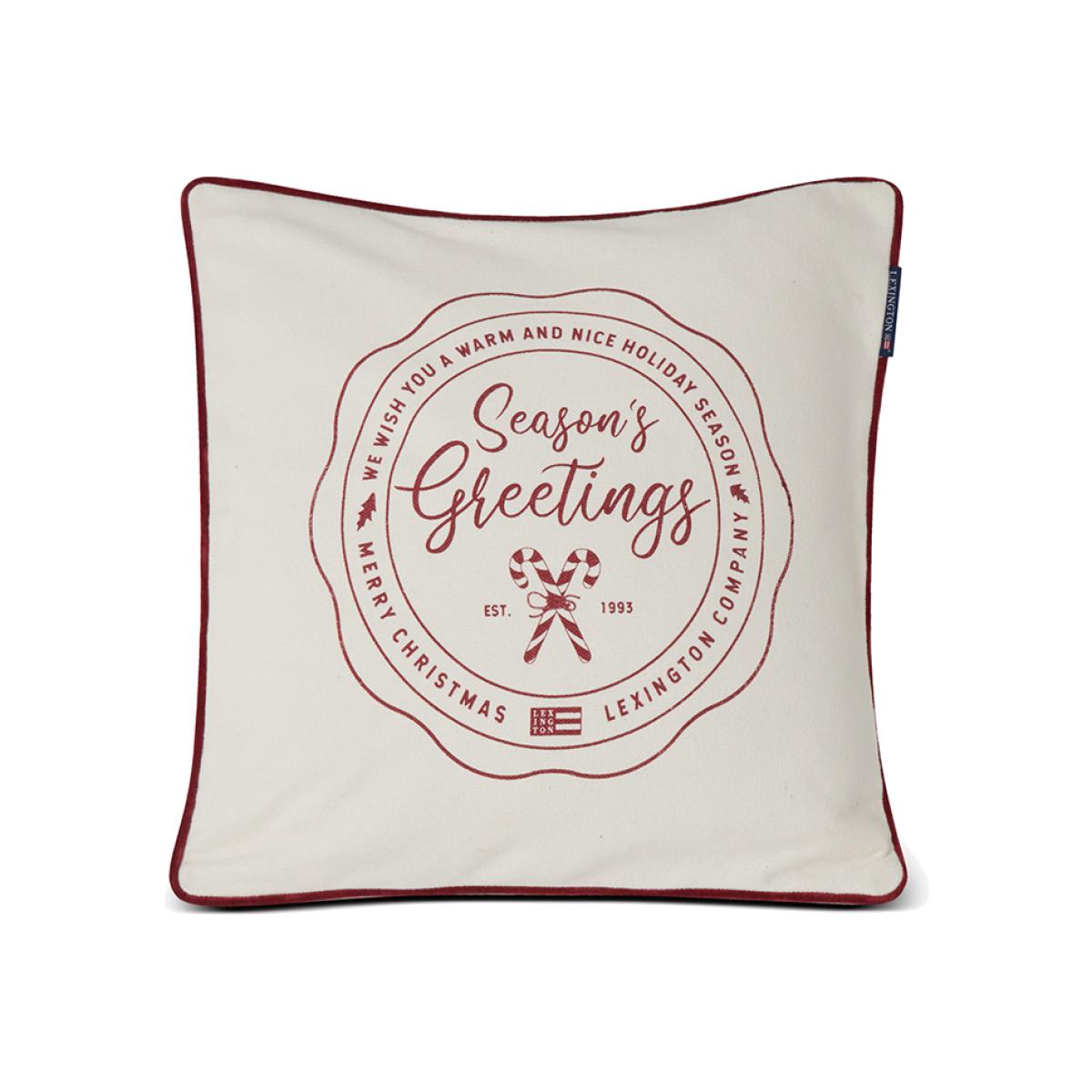 Lexington Seasons Greetings Cotton cushion cover 50x50 cm Off white-red