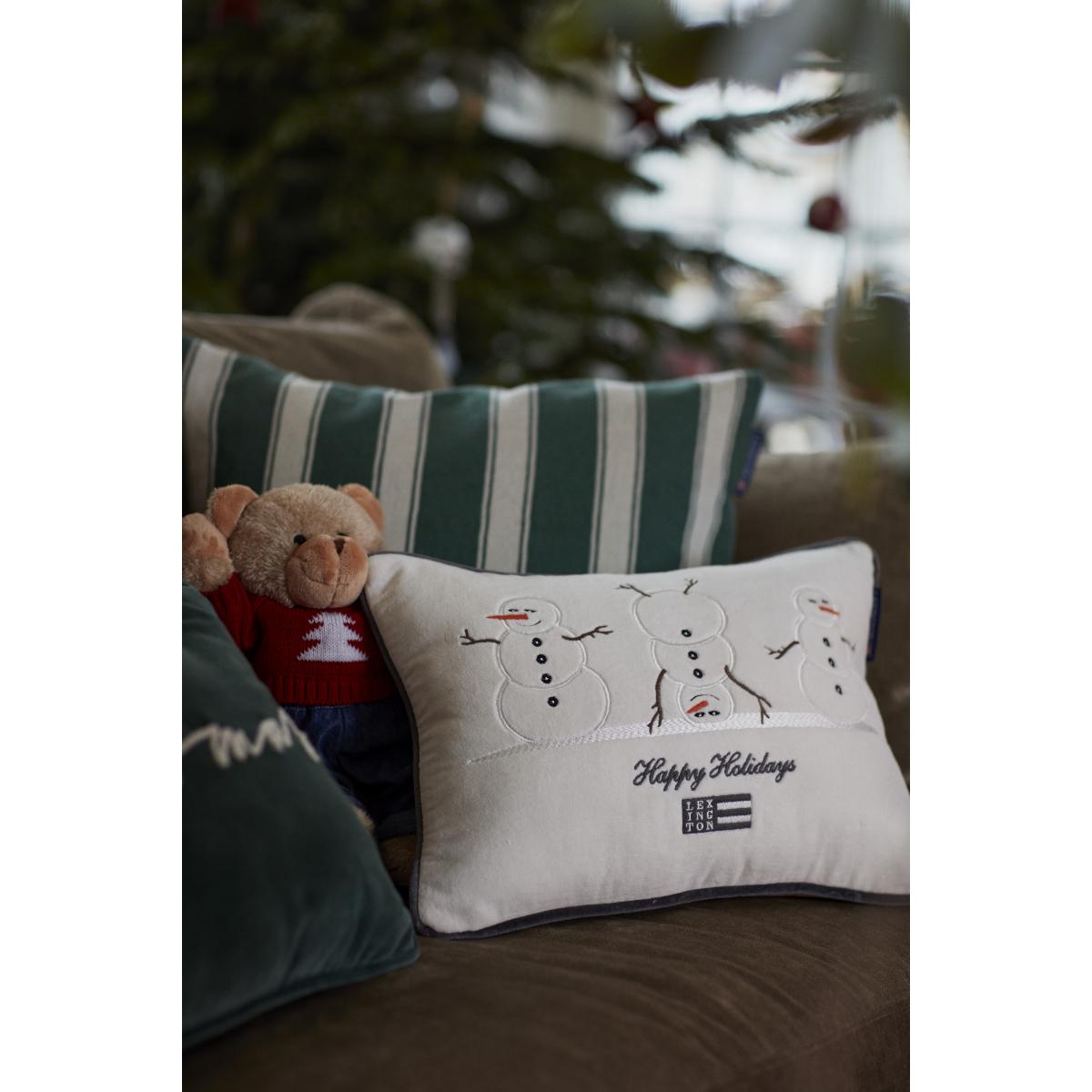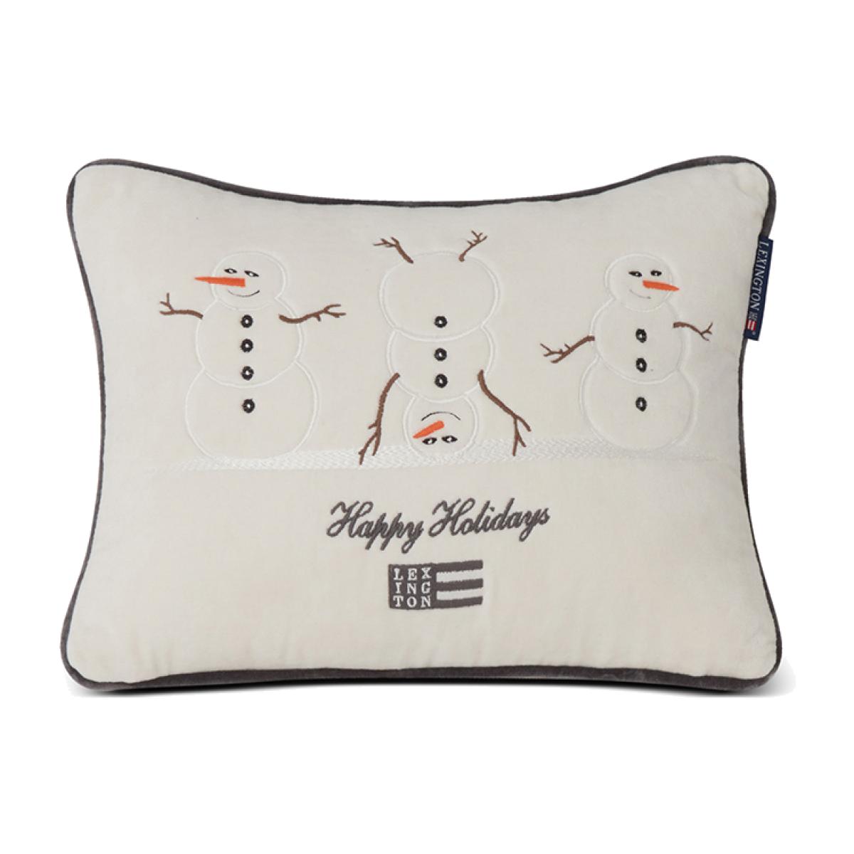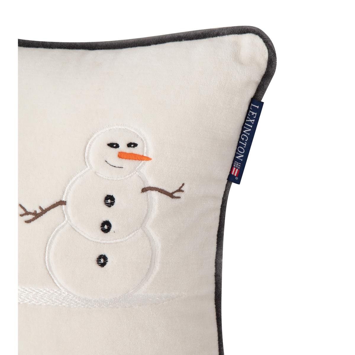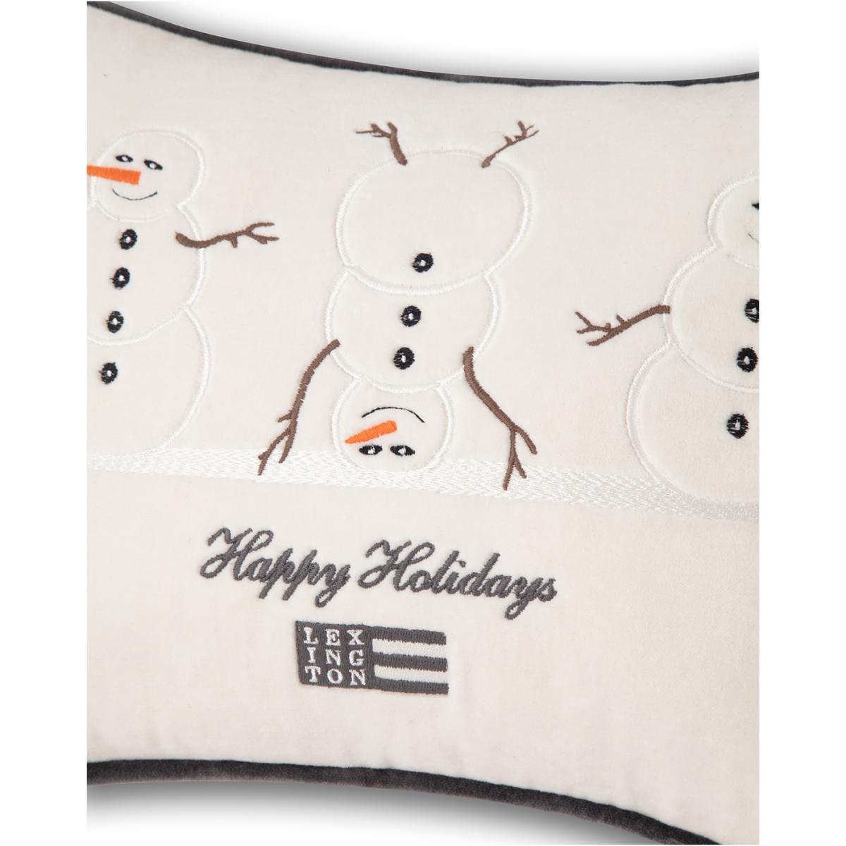 Lexington Snowmen Embroidered Cotton Velvet cushion 30x40 cm White