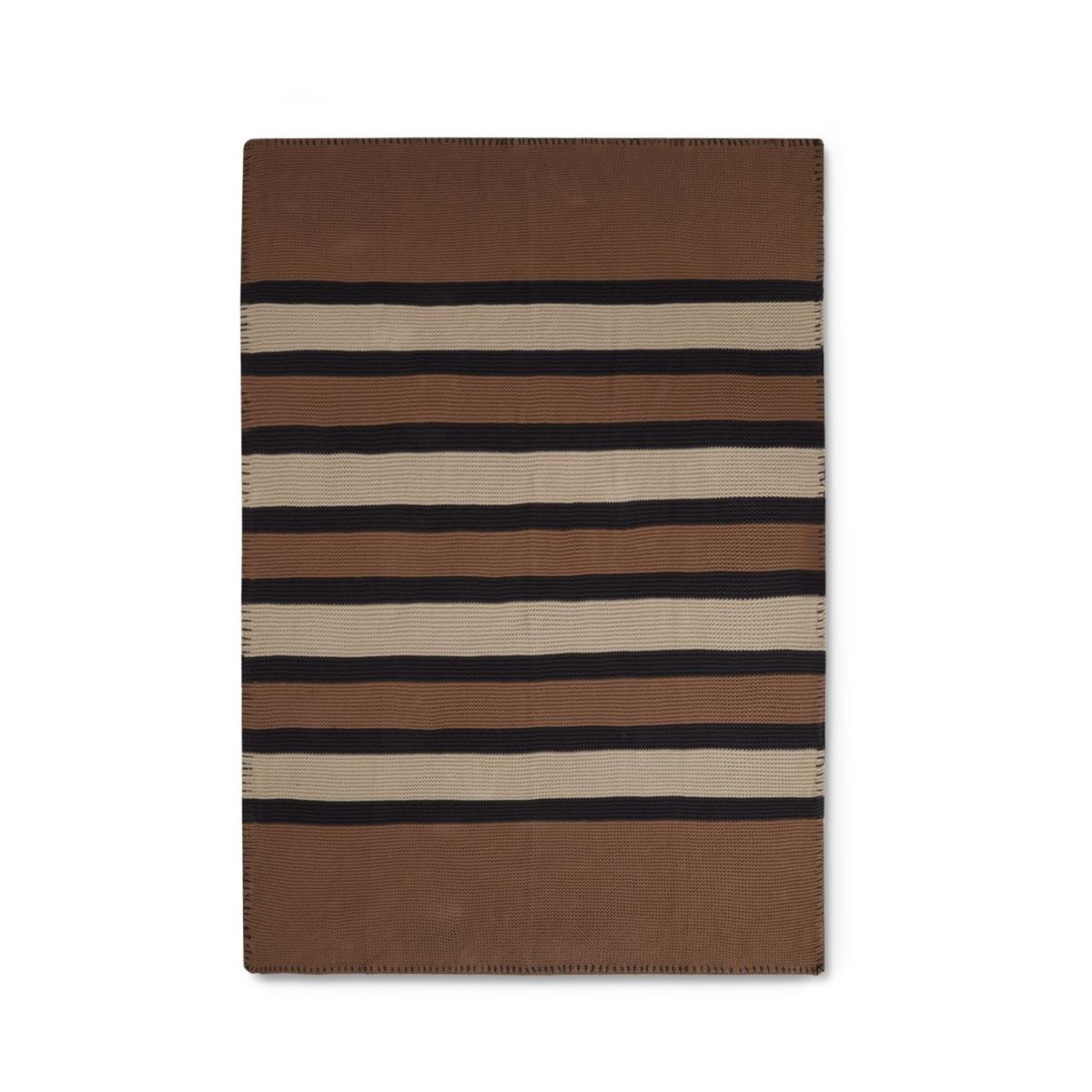 Lexington Striped Knitted Cotton throw 130x170 cm Brown-beige-dark gray