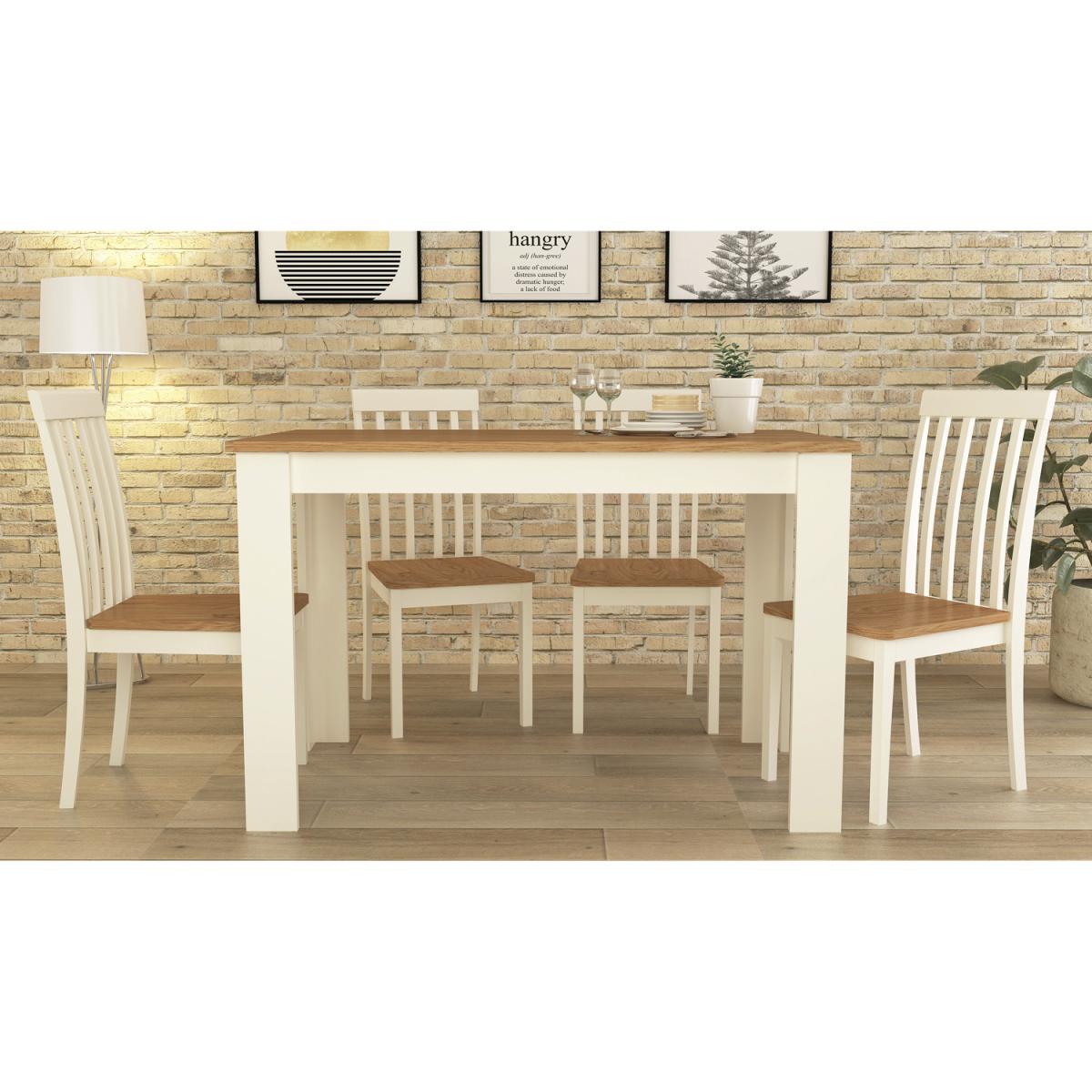 I love this dining set for its clean, neutral palette which makes it tremendously versatile. The cream finish lends itself well to various interior styles, from Scandi-inspired minimalism to more rustic or coastal themes. It’s a practical choice for those who want a bright, airy feel in their dining space. To style it effectively, consider adding colourful or textured tableware to create visual interest, and incorporate soft textiles like placemats or runners for warmth. Placing it against a contrasting feature wall, or complemented by natural wood or greenery, can really make this set stand out without overpowering the room. Overall, it’s an adaptable piece that can anchor a dining area, whether in a modern apartment or a cosy kitchen nook.
