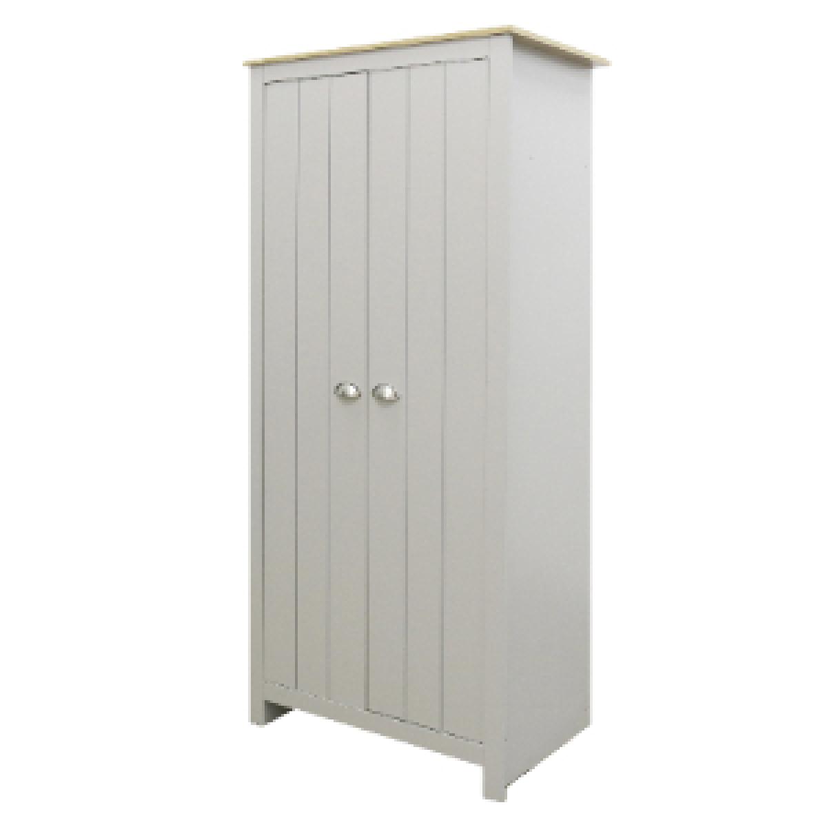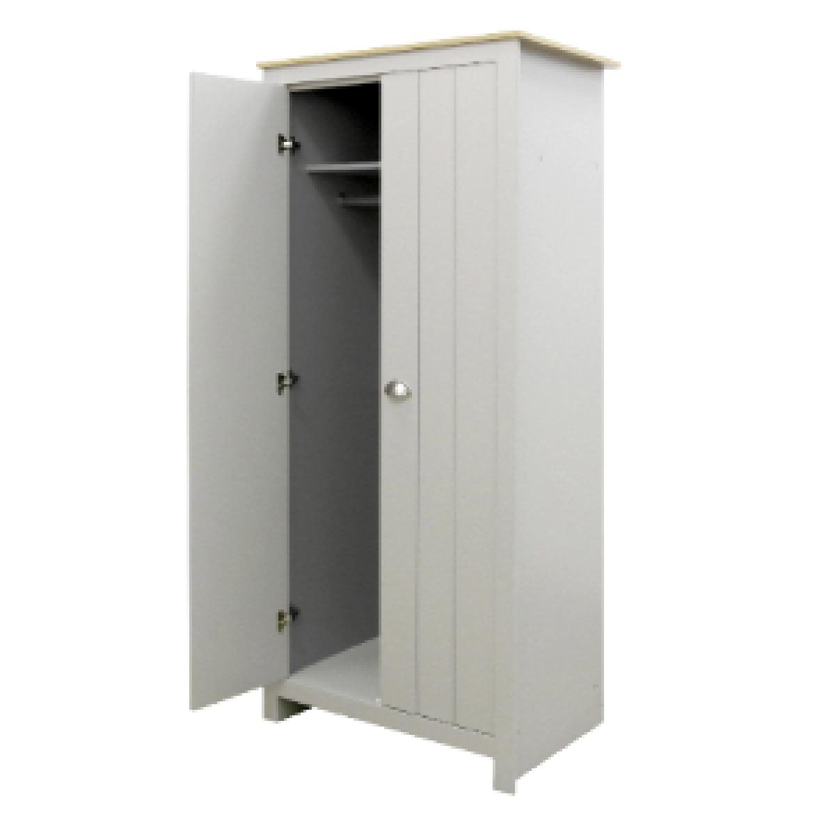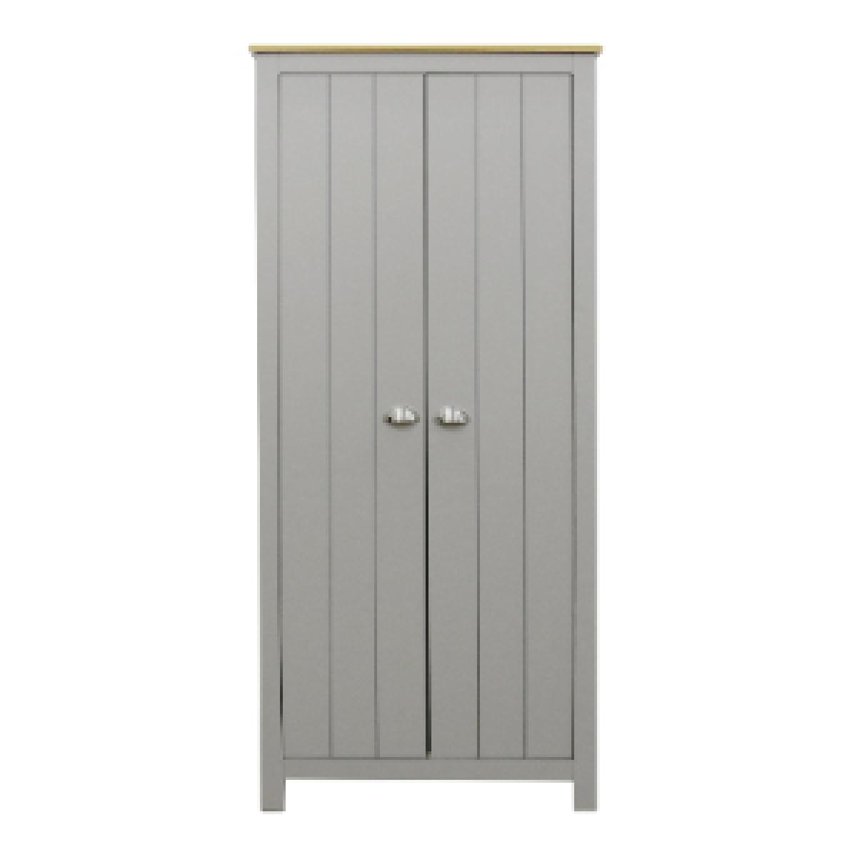 The perfect place to store your clothing, this Lexington Two Door Wardrobe prevents your room from filling with clutter. Finished in chic grey with an oak veneer top, this contemporary country-style wardrobe looks smart in almost any decorative scheme. Featuring two doors with pocket handles, this beautifully designed wardrobe is sure to look fantastic in your room.