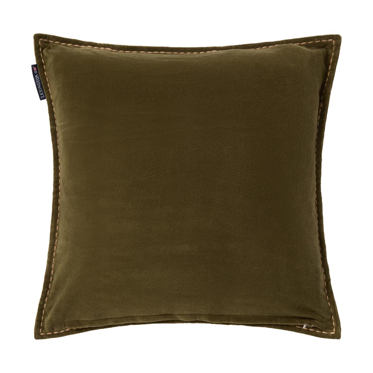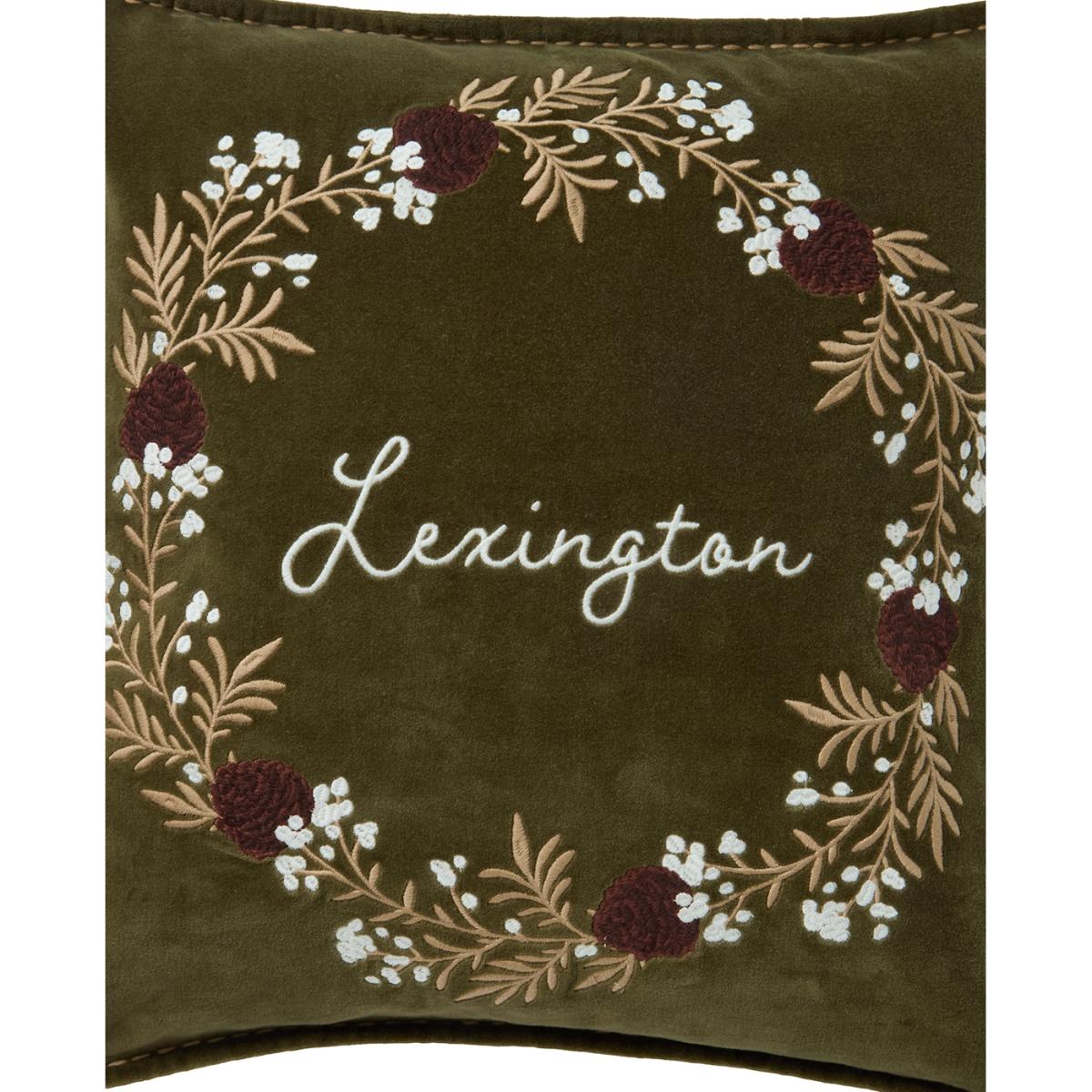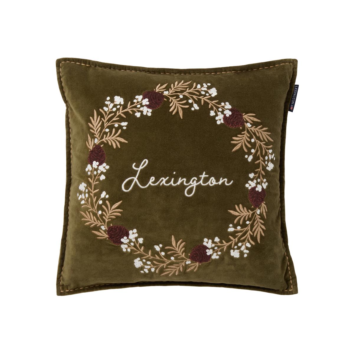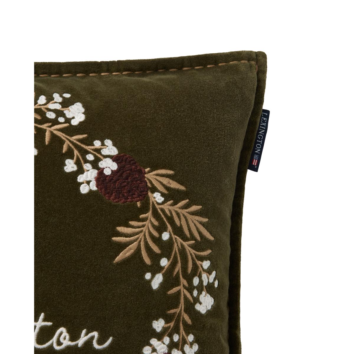 Lexington Wreath organic cotton velvet cushion cover 50x50 cm Olive-brown-white