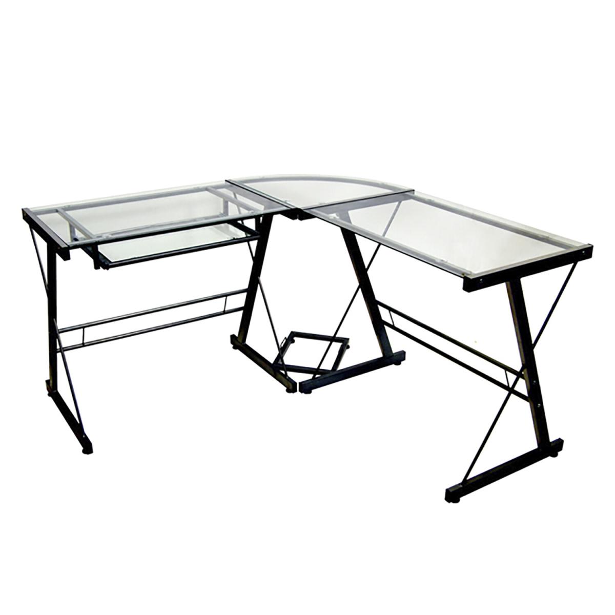 Lexon Corner Desk - Black with Clear Top